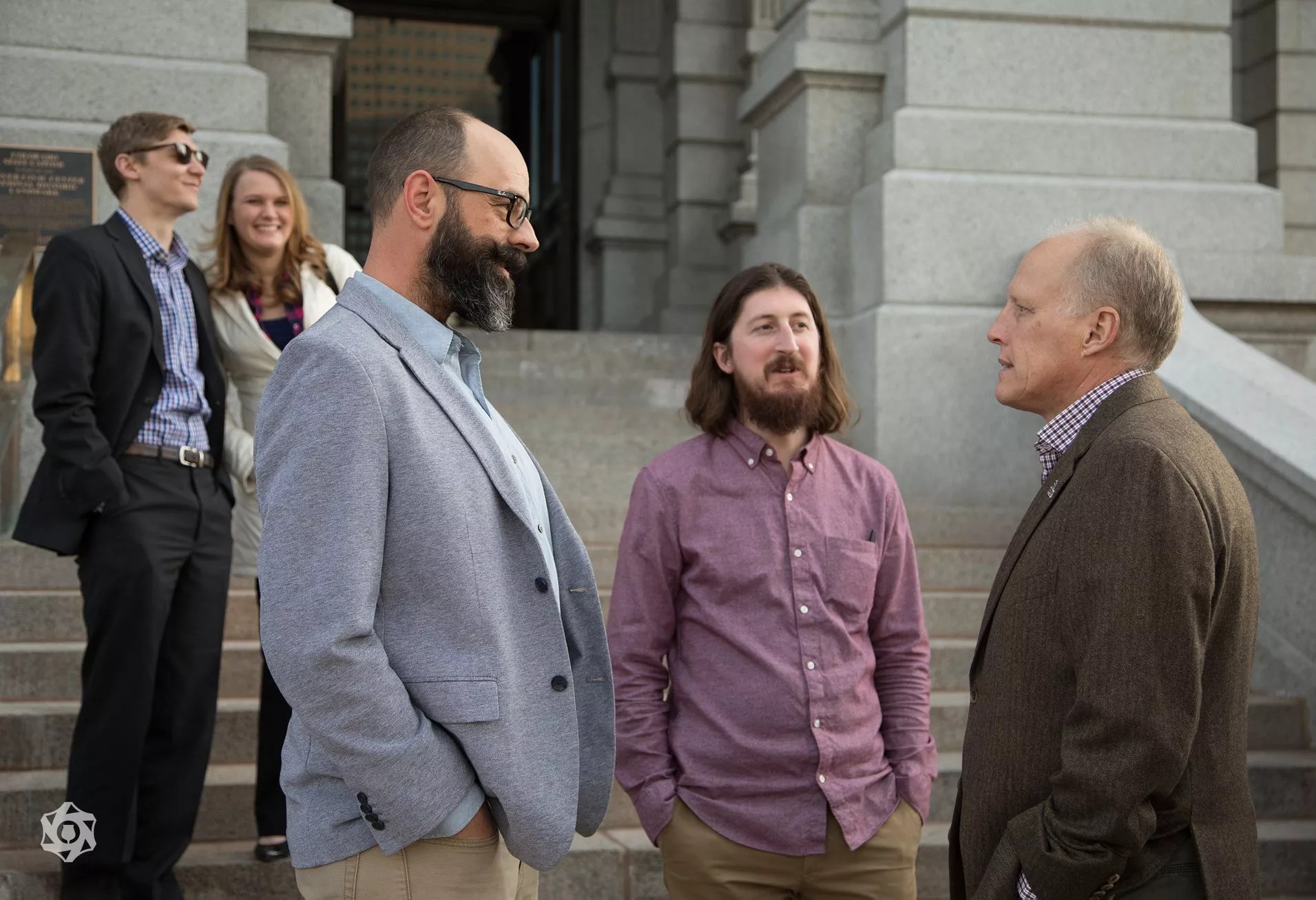Steve Kurowski (left) wrangles brewers and lawmakers at the Capitol Building.