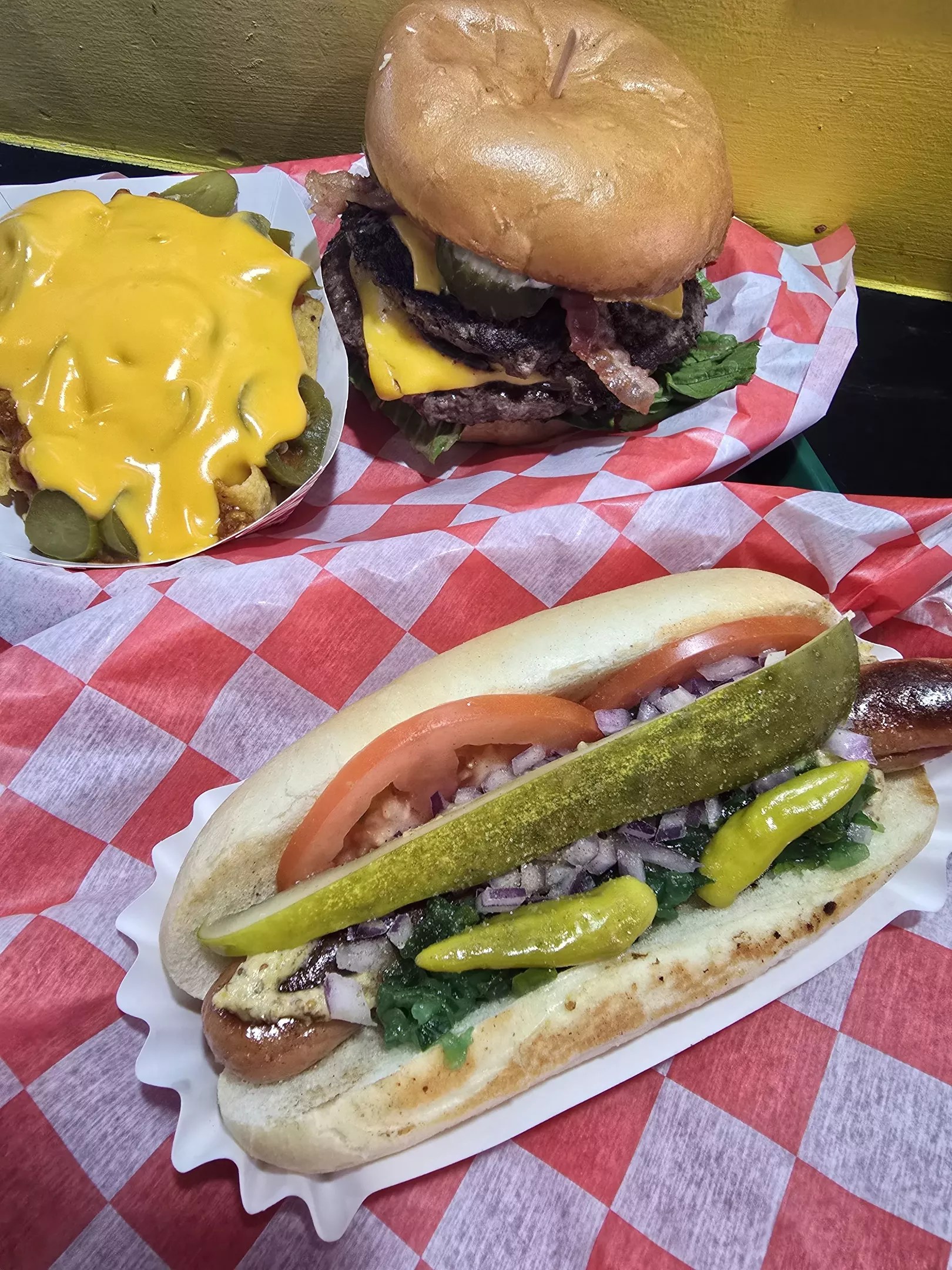 The snappy dogs, of course, from the classic Chicago dog to the chili-doused Atlanta Slaw Dog, the deep-fried Chimi Dog, the Rippin’ Rockies Dog with green chile and sour cream, and the Denver Dog wrapped in a flour tortilla.