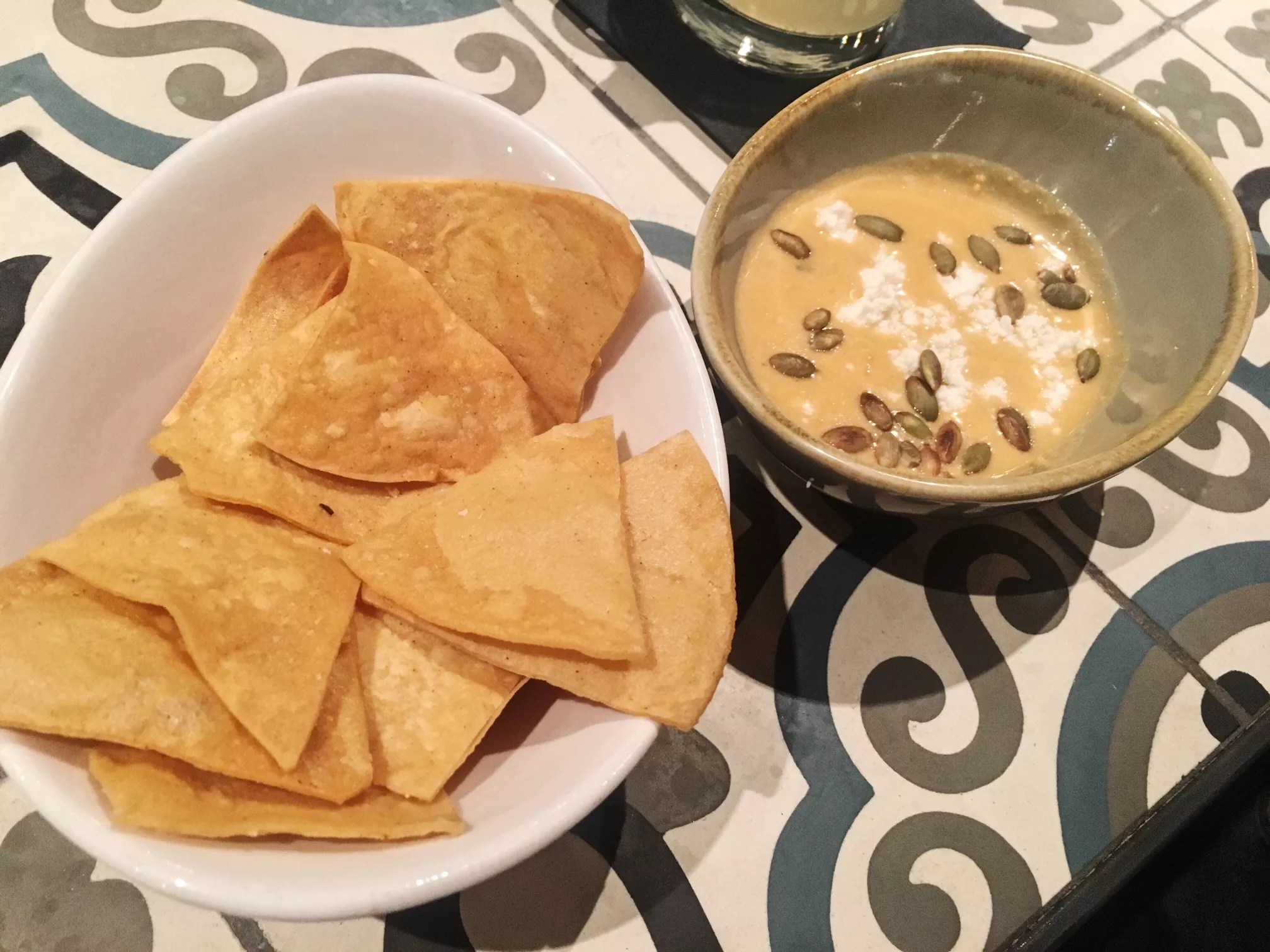 As for the happy-hour food, make a beeline for the queso; the creamy blend of four molten cheeses picks up a nice crunchy note from a topping of pepitas, and disappears quickly when scooped onto freshly fried flour tortilla chips. Give it more crunch by adding toasted crickets, or boost the heat by lacing in jalapeños.