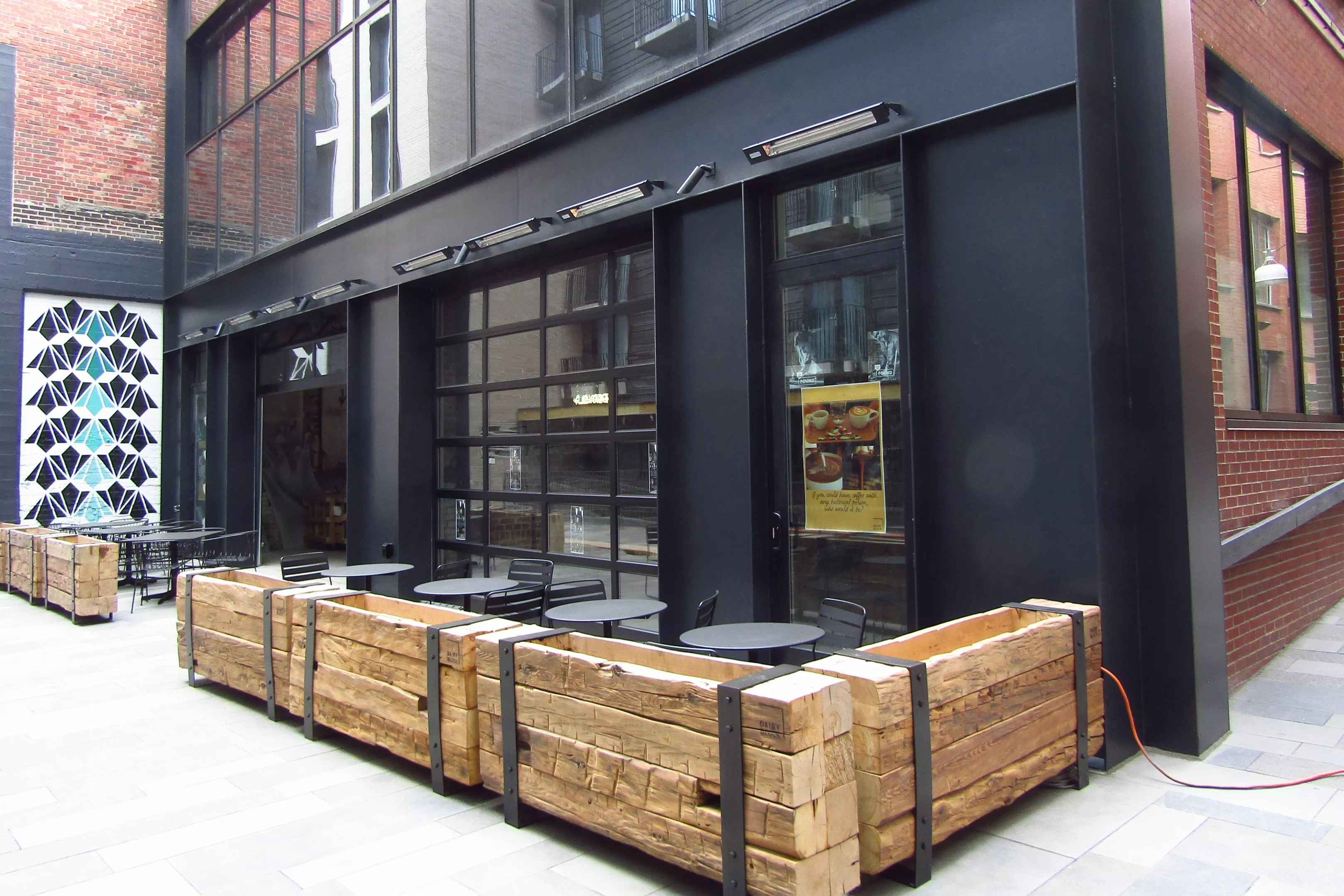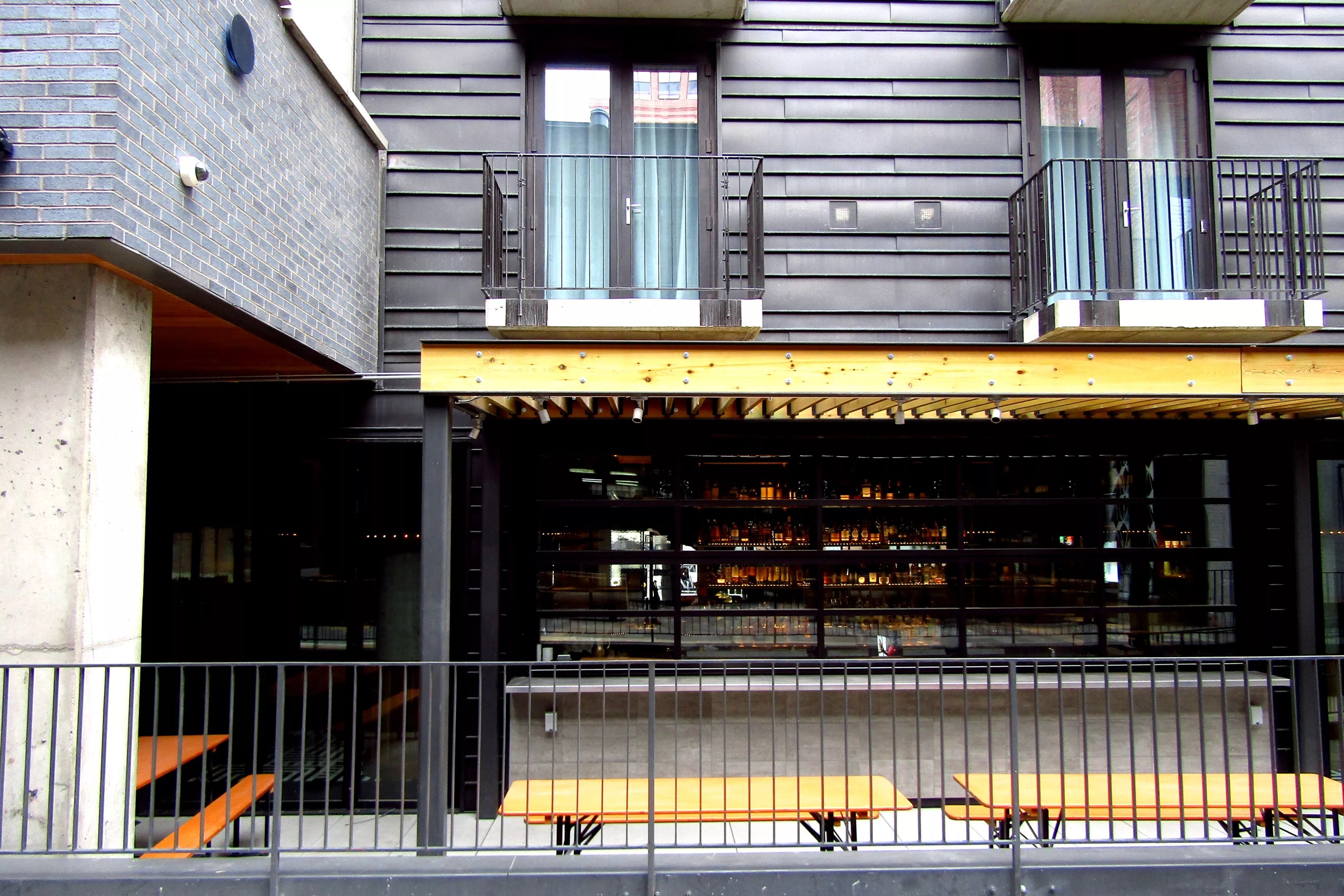 Part of the Alley is covered, since the Maven Hotel above it spans the center of the block on the second floor, so you’ll have shelter in case of rain or snow.