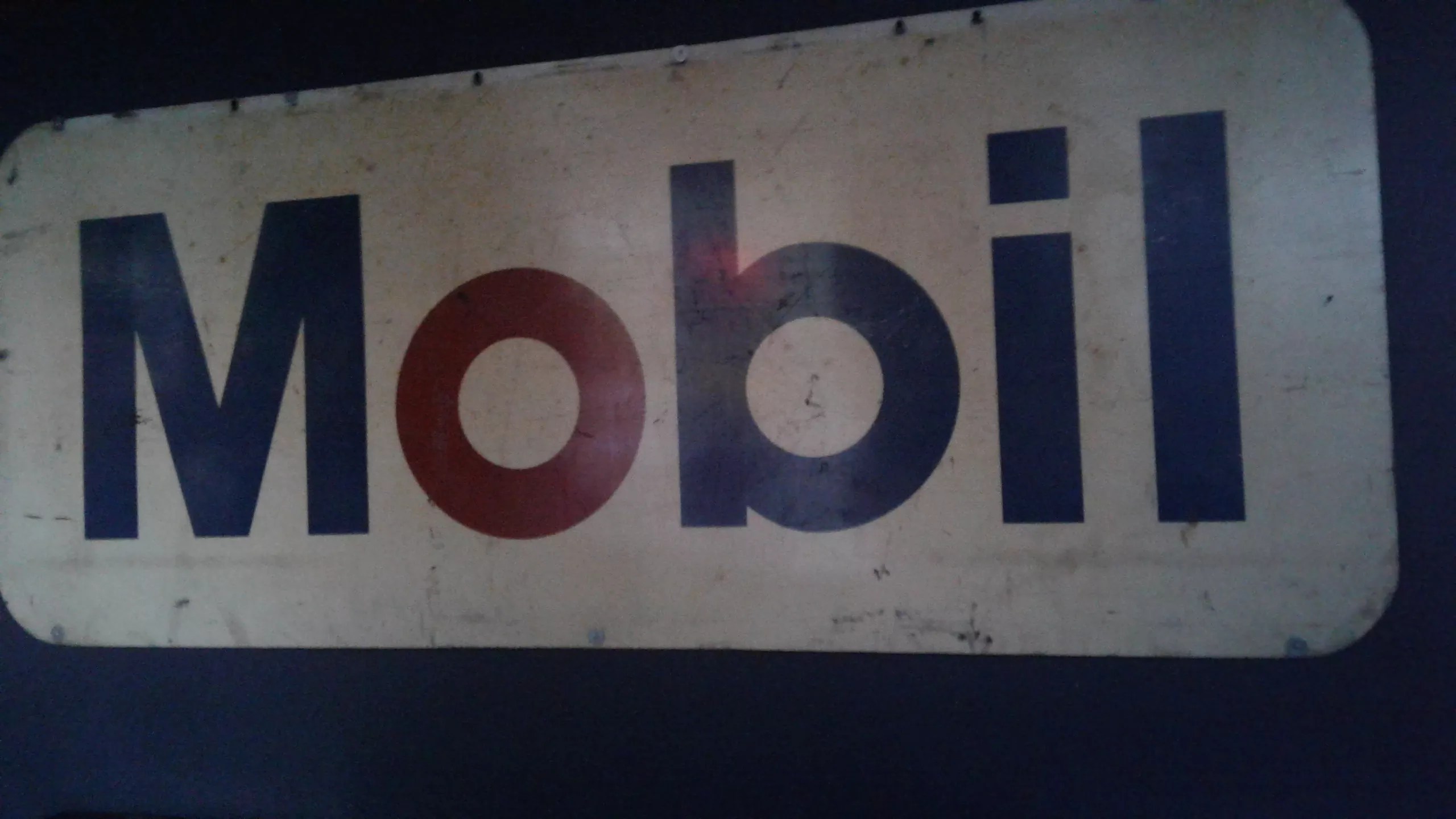 This Mobil sign is one of the collection of antique signs and other automobile-related decorations at the Garage.