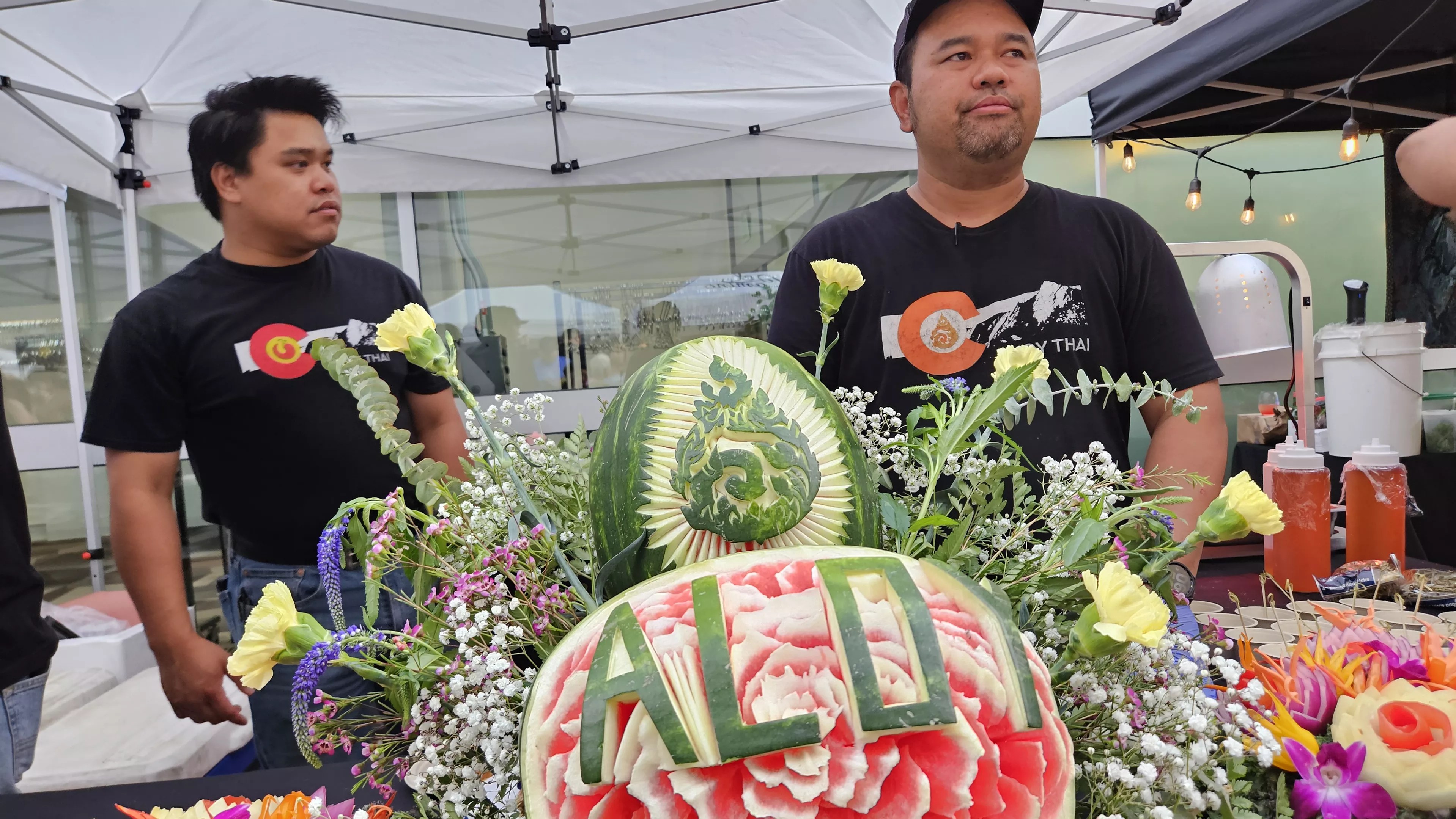 But food and drink weren’t the only draws (admittedly, they were the main draw) at The Big Eat. “We had some really cool non-food activating,” says Abell, including a band, roving characters from Meow Wolf, a Roblox Game (a video game screen in front of the Korea Agro table), and Mija of Moon createding poetry for attendees on the fly.