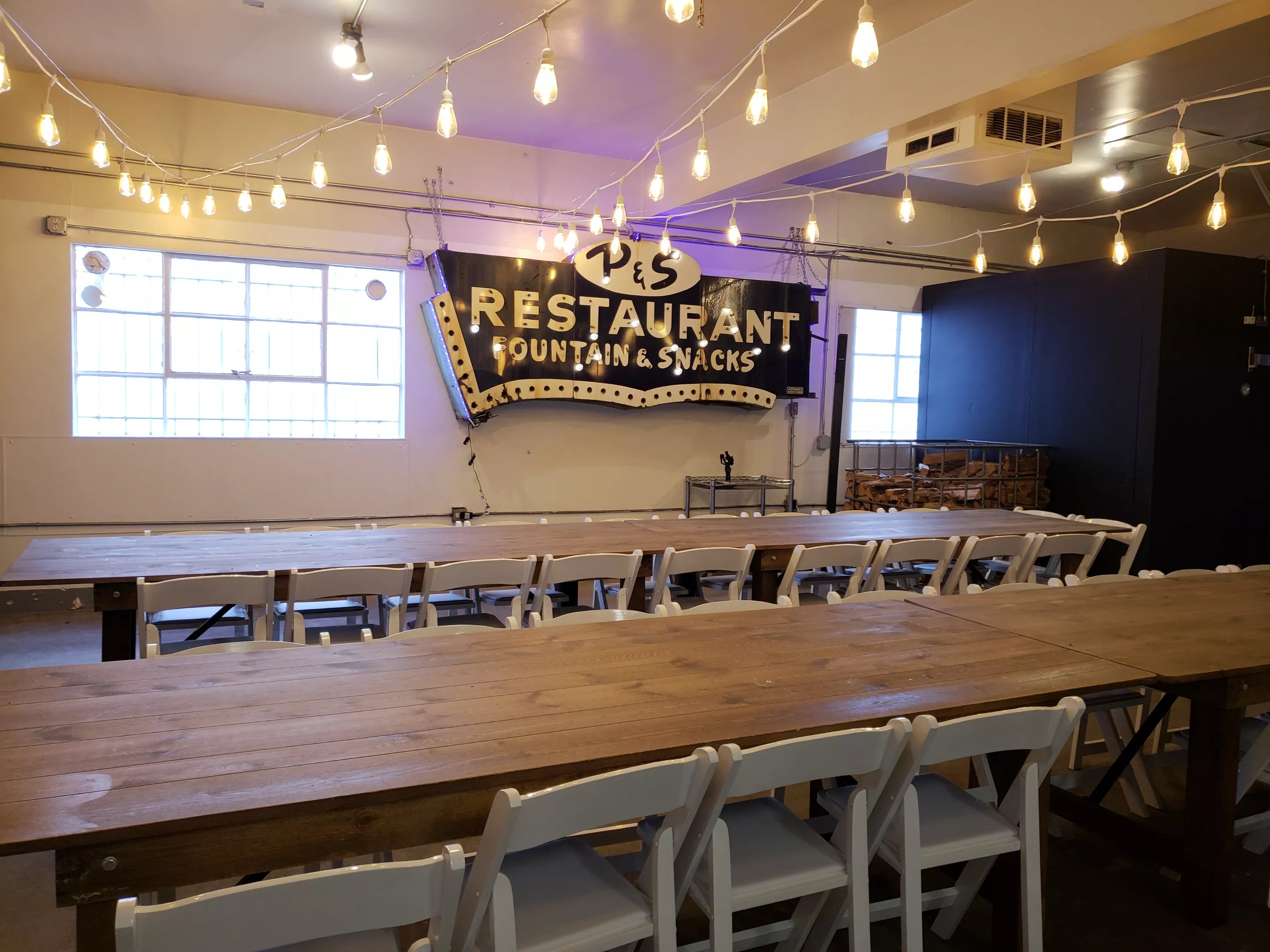 Around the time that the Budlong truck launches, Leonard will also open up BBQ Supply Co., his barbecue event space and catering company that also has its roots in Chicago, where the entrepreneur has spread his love for barbecue with two locations. The Denver branch of BBQ Supply Co. can be found at 2180 South Delaware Street, across from the West Evans Park-N-Ride, in a building that was most recently home to Mame’s Burritos. Inside BBQ Supply Co.’s dining area. The sign came from a diner across the street from Leonard’s first Chicago restaurant. Linnea Covington