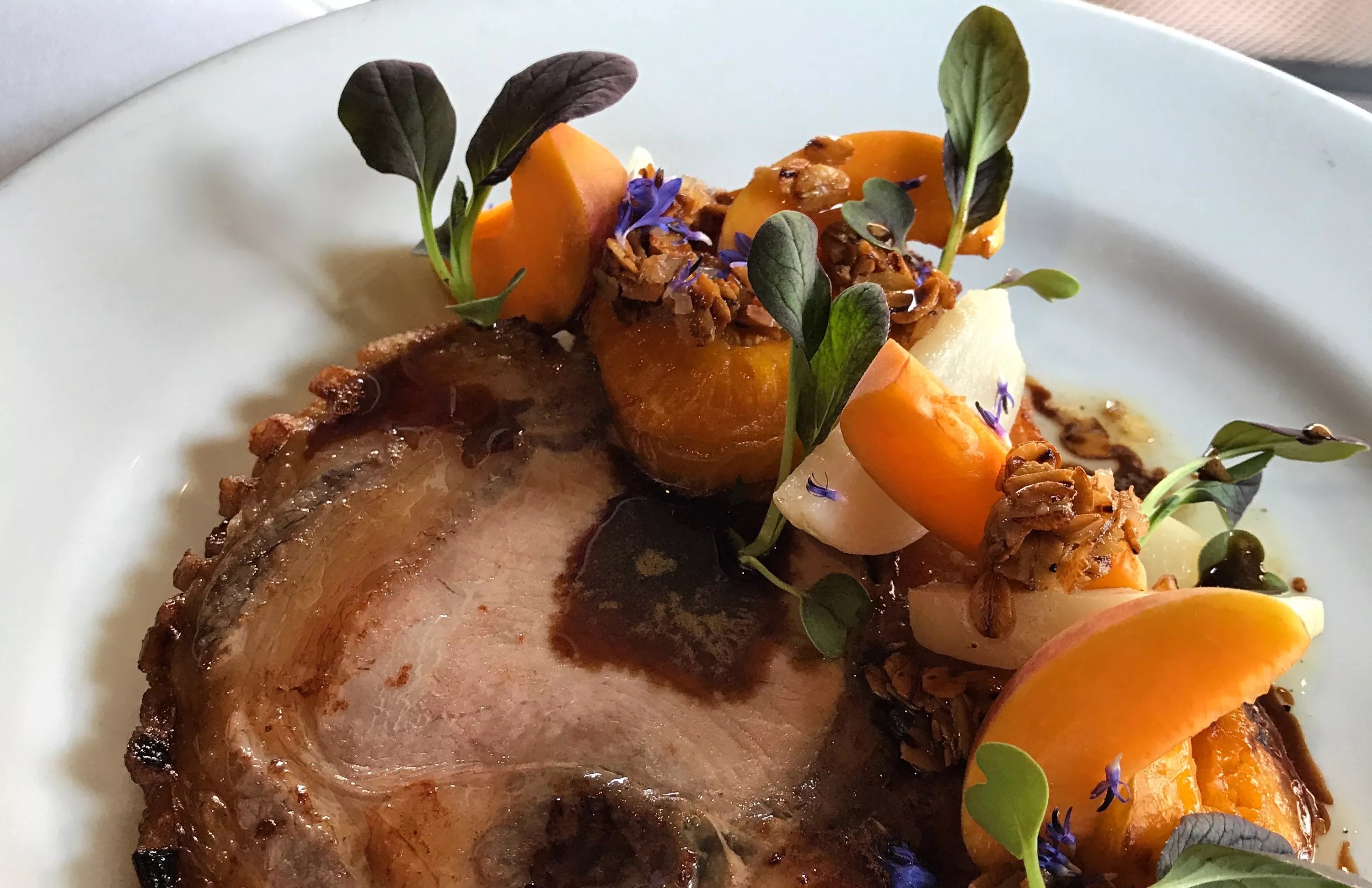 The Preservery Porchetta laden with apricots, turnips, mustard greens and corn flowers. Tim Kuklinski