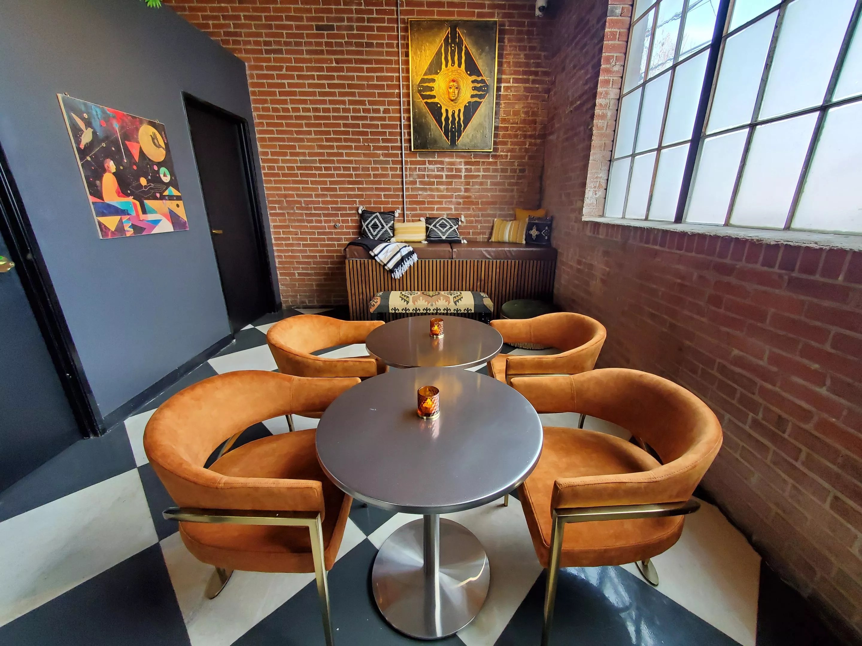 It’s been decked out with plenty of seating and a vibrant color palate with some nods to the Southwest. The bathrooms, which are bathed in red light and have vintage mirrors covering the walls, are worth visiting, too. “This is our starting canvas,” Chisholm says. “I suspect even six months from now, it’ll have a lot of uniqueness and little things added on – that’s part of the fun of having a bar, running a bar, working in a bar – the little things that change when places stick around for a while.”
