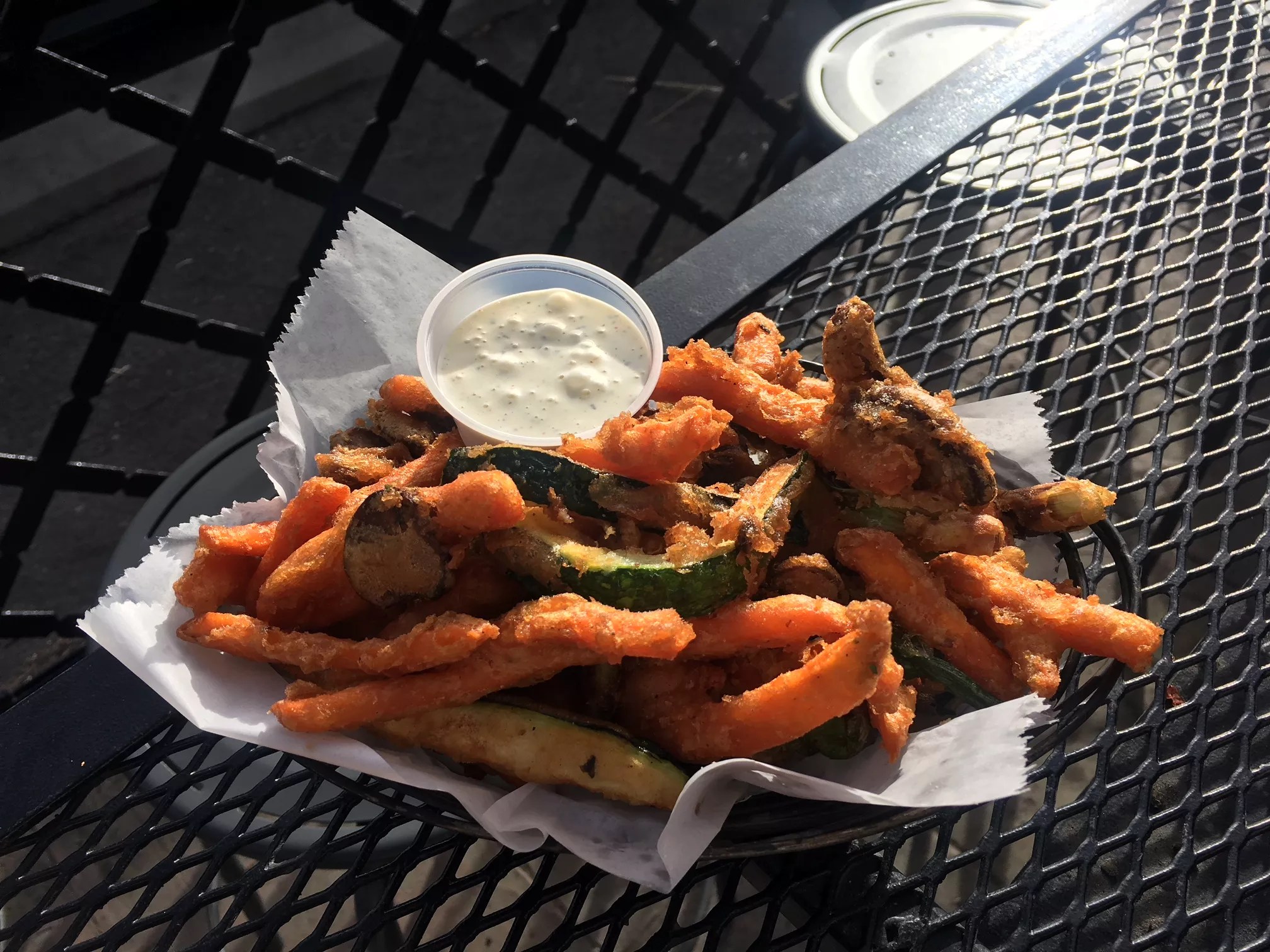 If you were wise, you’d just stop there, but I am not wise, and so every time I go to Billy’s, I add another snack or two, which leads to an intimidatingly large feast. Should you go this route, the half-pound of peel-and-eat shrimp is a decent addition, generously showered with Old Bay seasoning. The sleeper hit, though, are the veggie fries. Sweet-potato strips, zucchini, mushrooms and green onion, all with a shatter-crisp tempura batter, are ideally matched with a tart buttermilk ranch dressing. It’s good drinking food, especially if you follow up that margarita with a dollar-off draft beer.