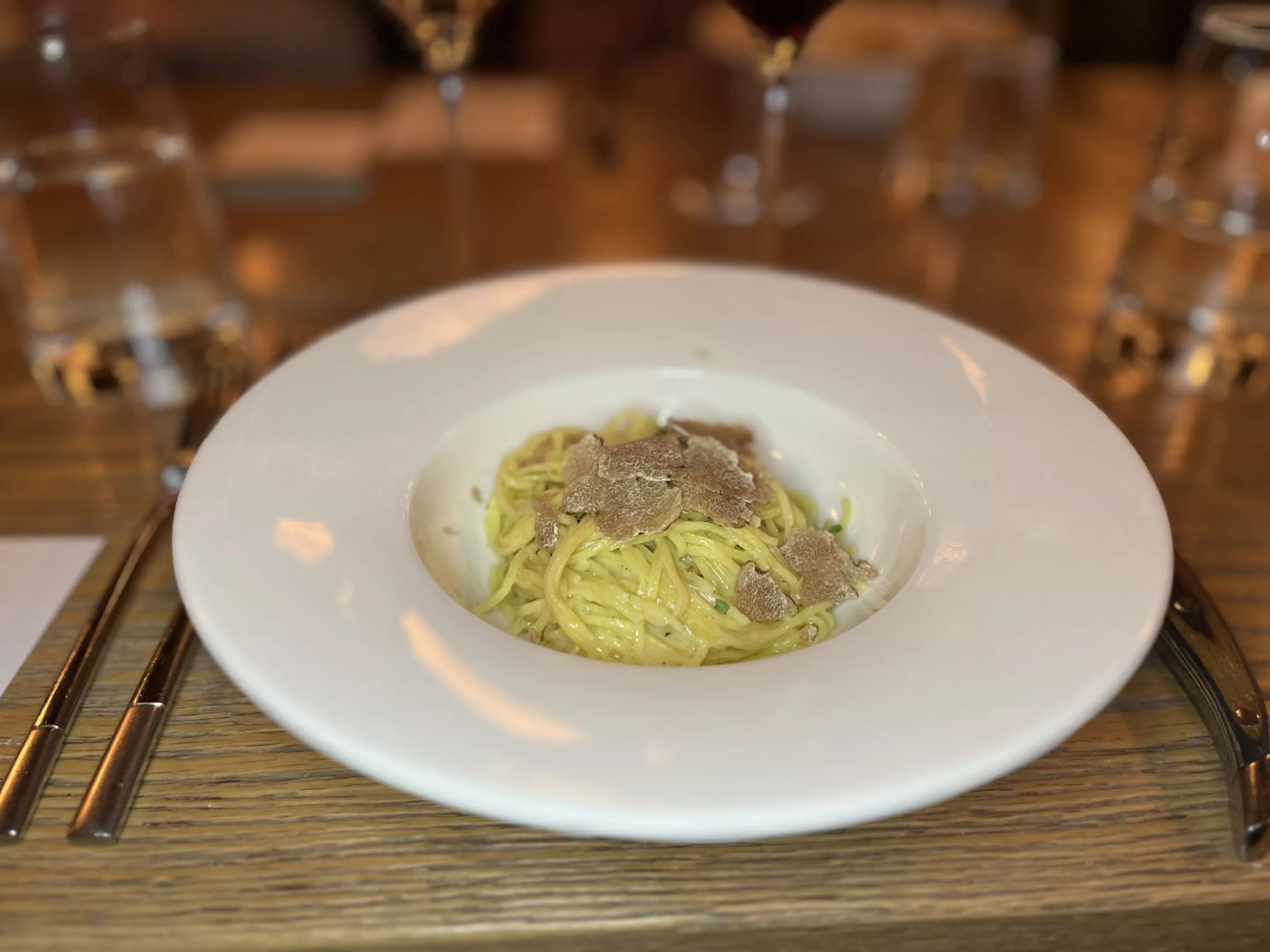 Tajarin noodles in butter sauce with shaved white truffle.
