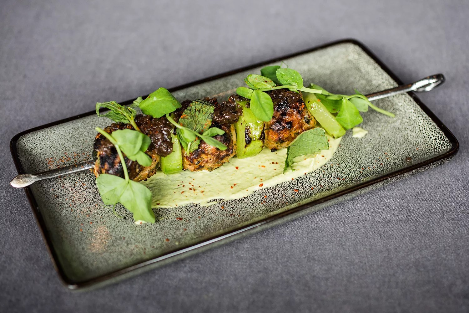 Humboldt calamari with lemon emulsion, potatoes and pickled celery hearts at Concourse.