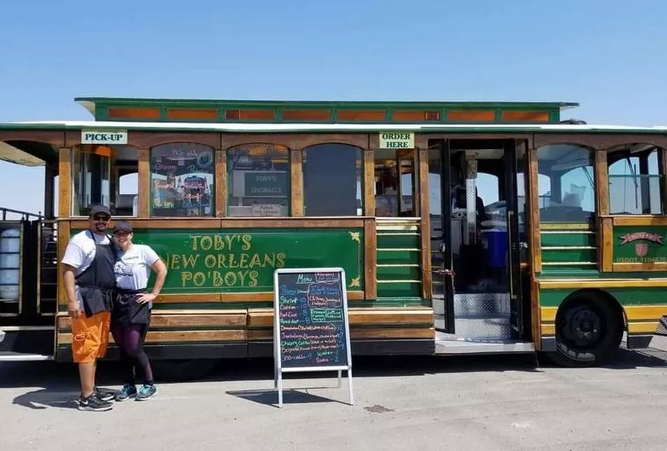 Toby’s New Orleans Po’Boys is more than just a literal vehicle for tasty Cajun and Creole bites: It’s a love story in three parts. First, between Damon and Maria Tobias, owners of said truck (which is decked out to look like a trolley – or, as one would say in New Orleans, a streetcar). Second, the Tobiases hold a place in their hearts for the community they serve, forgoing the usual food truck brewery circuit to bring goods to less served areas. And the last part, anyone can taste in the po’boys, red beans and rice, gumbo and beignets that the husband-and-wife team make.