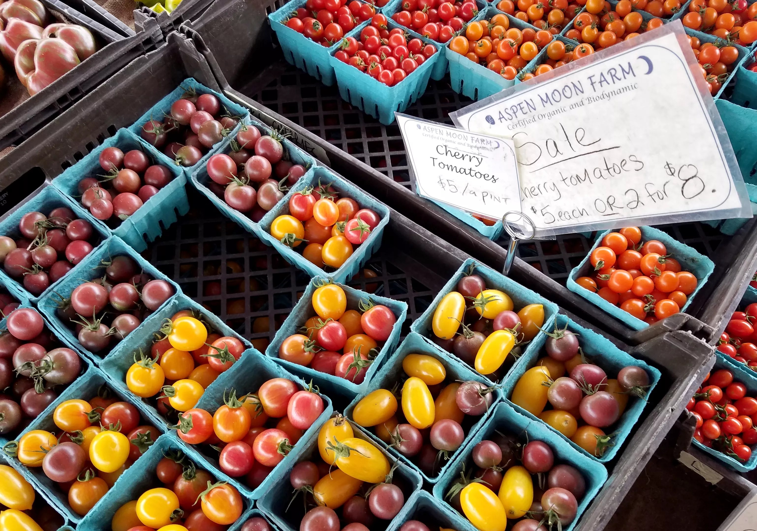 Aspen Moon Farm’s colorful display of cherry tomatoes.