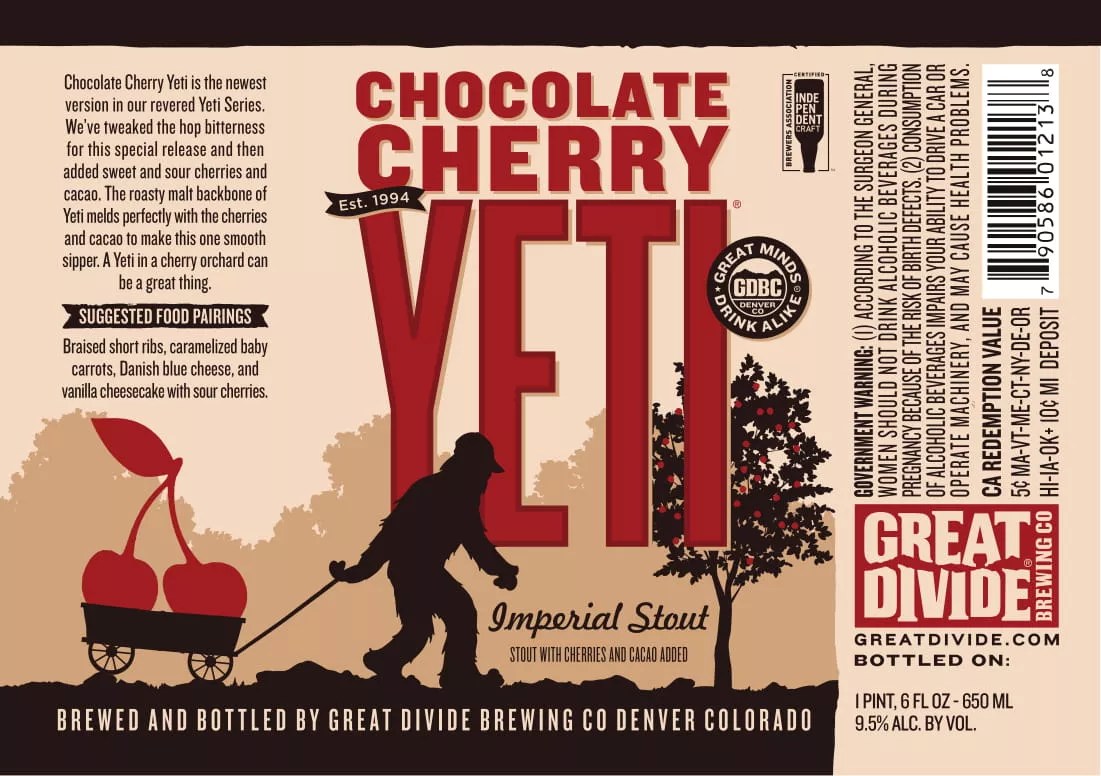 A big hit at Great Divide’s Yeti party last December, Chocolate Cherry Yeti is one of two new Yetis planned for 2019 (the other is S’mores Yeti, in October). It should debut in the first week of February.