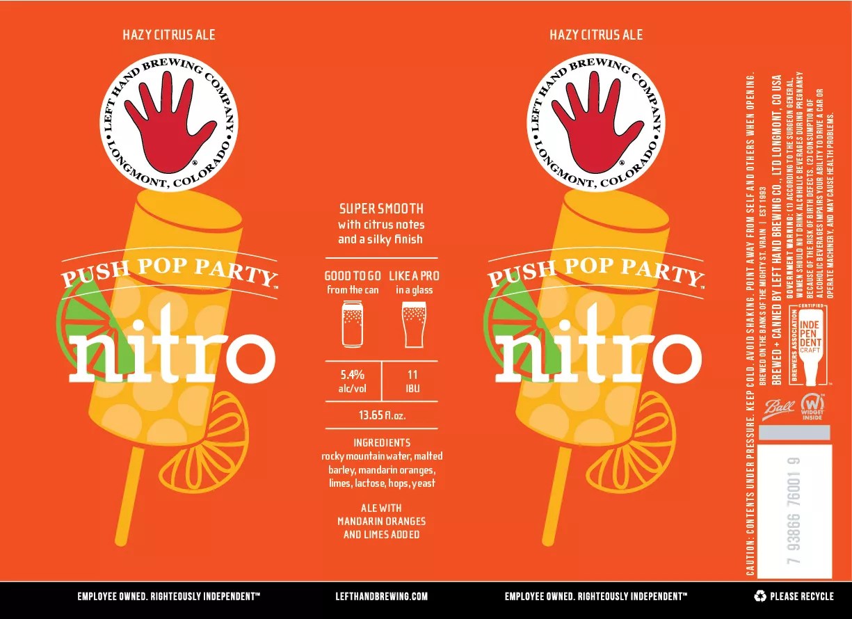 Left Hand Brewing Company Nitro Push Pop Party Hazy Citrus Ale TTB