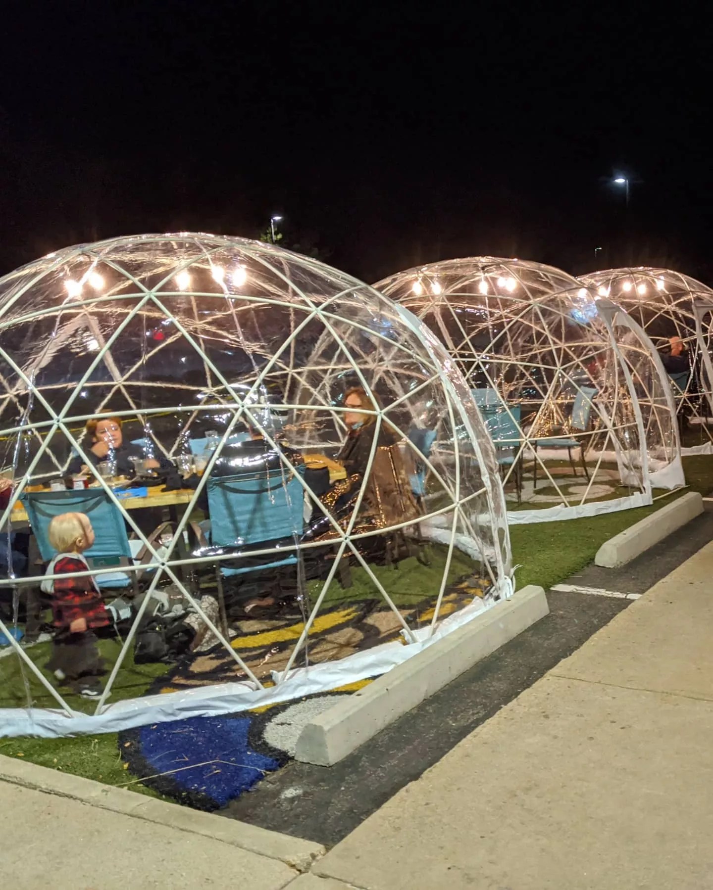 But empty taprooms forced breweries to scramble to figure out how to seat people outdoors – even when snow accumulates and temperatures drop. Plastic pods, greenhouses and tents were the most common structures that breweries began using in October and November. Of course, setting up outdoor seating like Cerebral Brewing‘s huge tents took away parking for a few urban spots.