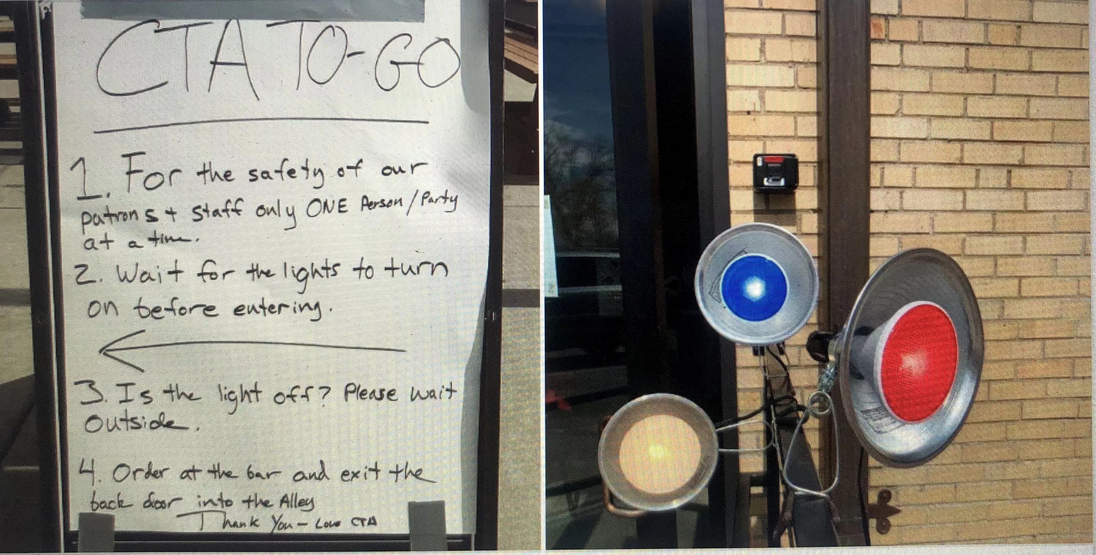 Early on in the pandemic, breweries were still getting used to the new world, including social distancing and rules about how many people could be allowed inside. Call to Arms Brewing rigged up a lighting system to let people waiting outside to buy takeout beer know when they could come in.