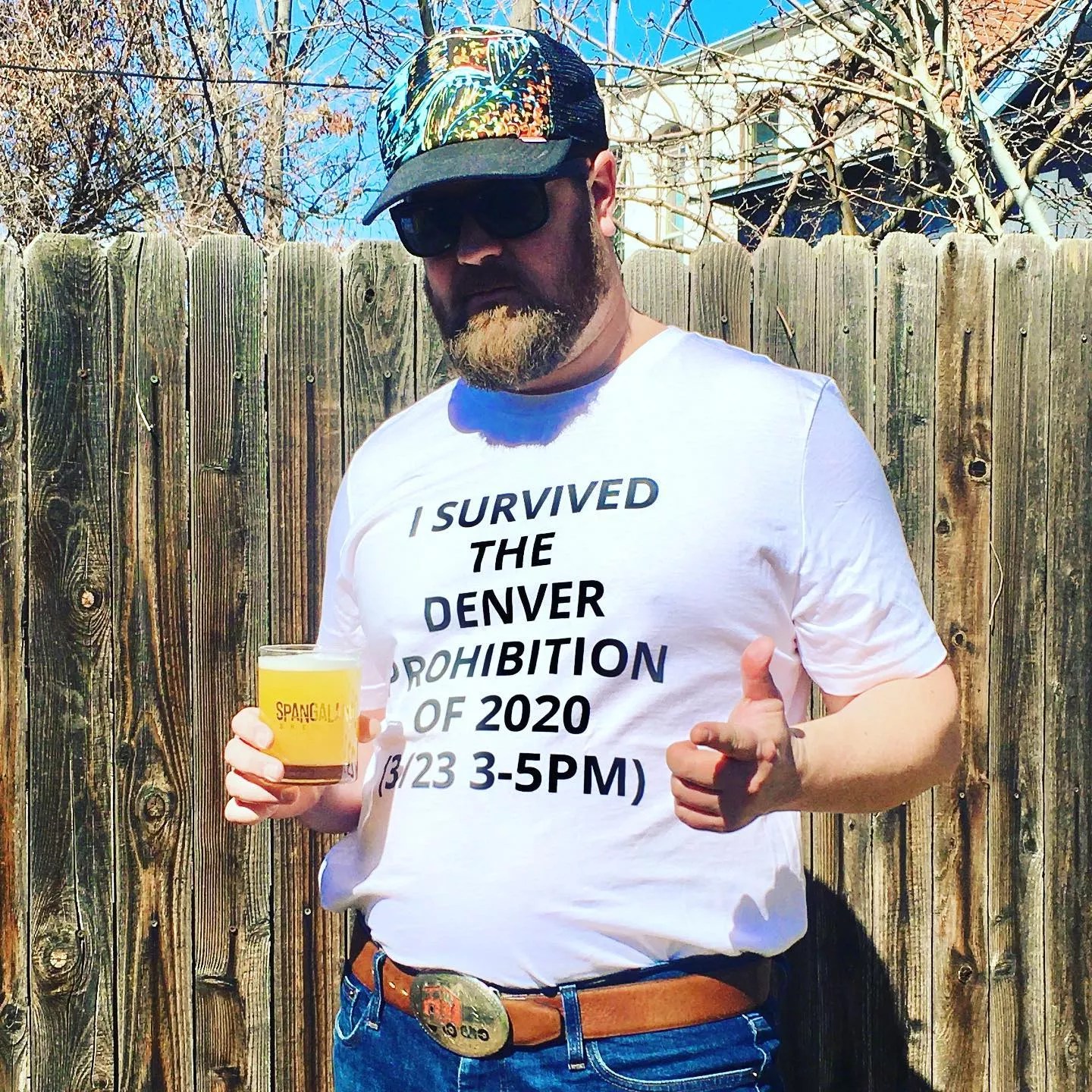 Denver’s first Prohibition started on January 1, 1916, and lasted for eighteen years. The city’s second Prohibition started on March 23, 2020, and lasted for two hours. That was when Mayor Michael Hancock issued his stay-at-home order following reports that people were continuing to gather in groups. He initially included liquor stores and recreational marijuana stores as non-essential businesses that would have to close – sparking a panic that resulted in long lines. Breweries also interpreted the order to include them. Shortly thereafter, Hancock clarified the brewery portion – a change that inspired glassware and T-shirts, including this one from Spangalang Brewing. Briar Common