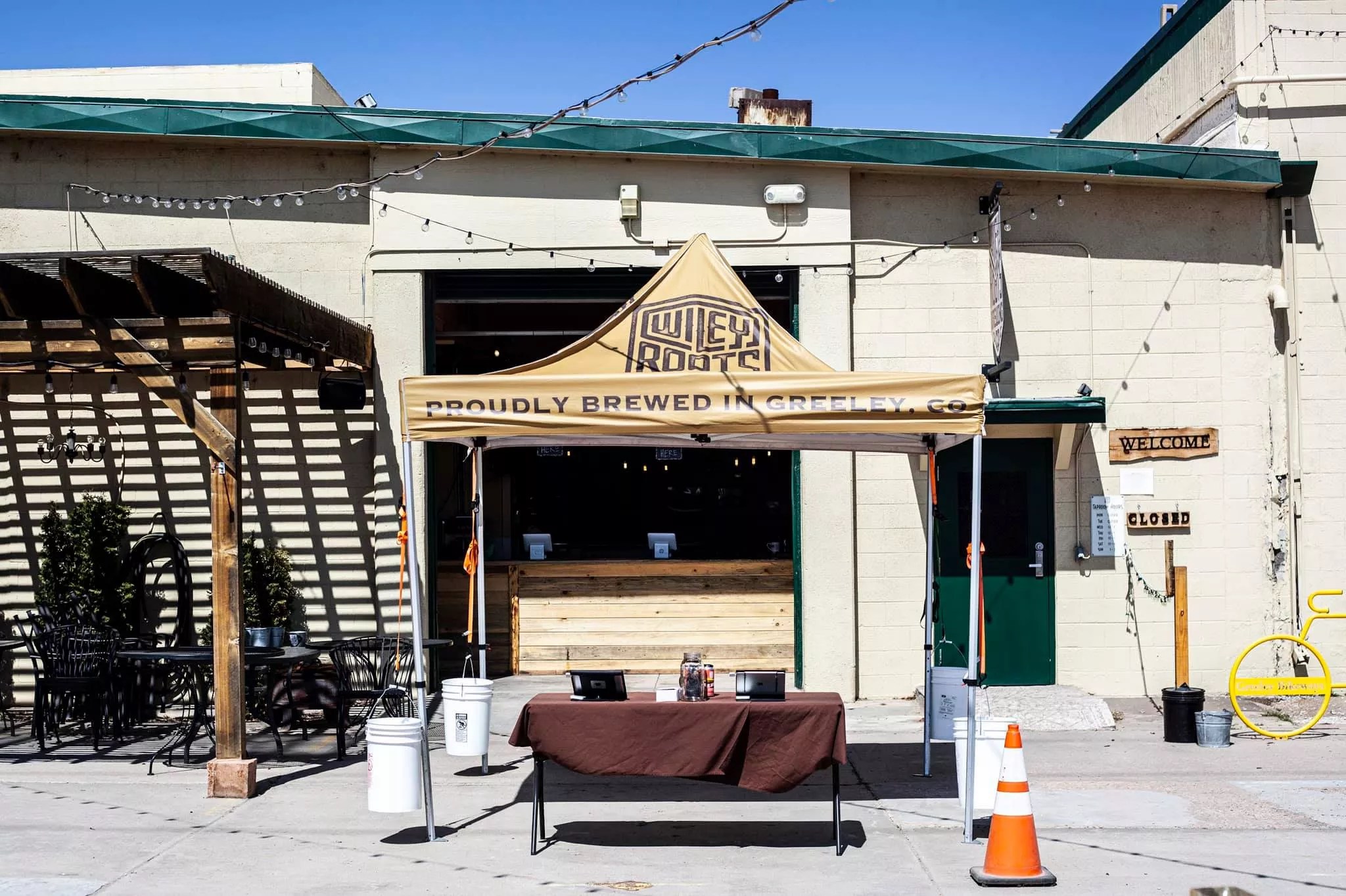 Drive-ups and drive-thrus, along with curbside pick-up, to-go windows and designated parking spaces, became the norm as breweries tried to figure out the most efficient way to get product out the door, keep their staff employed and stay within the rules. Although handing beer to someone in a car might have been frowned on (even a sealed beer) in years past, it was widely accepted in 2020. Wiley Roots Brewing in Greeley even set up this makeshift drive-thru where customers could pull up, pay and move on. No fries included. Ratio Beerworks