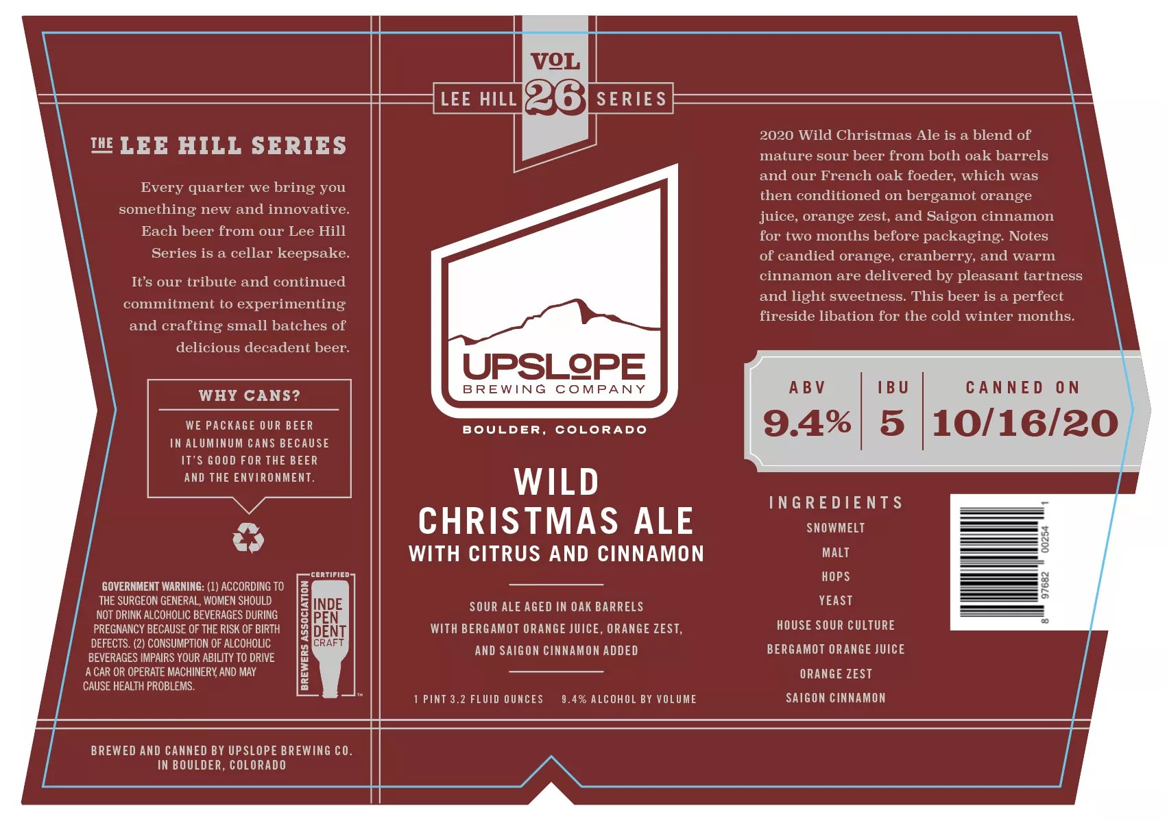What’s this? A hazy IPA from Upslope? Indeed, this Boulder brewery may be one of the last of Colorado’s largest beer makers to produce and package a hazy IPA. But, hey, time is meaningless in 2020 – and this beer will debut right around the New Year, anyway, as a new year-round offering. Brewed with kveik yeast, this 6.6 percent ABV hazy IPA will have notes of orange peel, pine and guava.