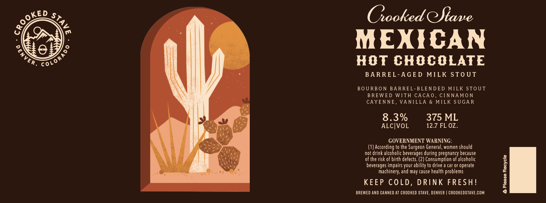 Crooked Stave’s latest foray into non-sour barrel-aged beers, Mexican Hot Chocolate is a milk stout brewed with milk sugar, cacao and vanilla and then aged in bourbon barrels. It was also infused with cinnamon and cayenne pepper to add some of the traditional flavors of Mexican hot chocolate.