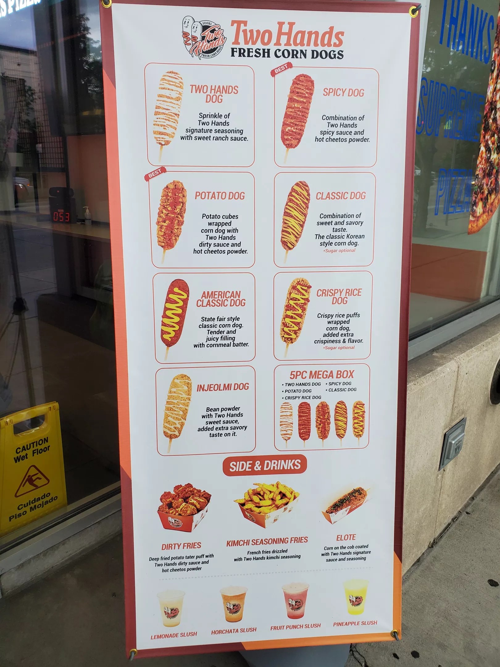 About the place: For months, the storefront near East Evans Avenue and South University Boulevard looked ready to open any day. The signs covering the windows promised Korean corn dogs coming soon, as well as a second brand, Thanks Pizza. But it wasn’t until mid-May that Two Hands, a Los Angeles-based franchise that is quickly expanding nationwide, debuted its first Colorado outpost.