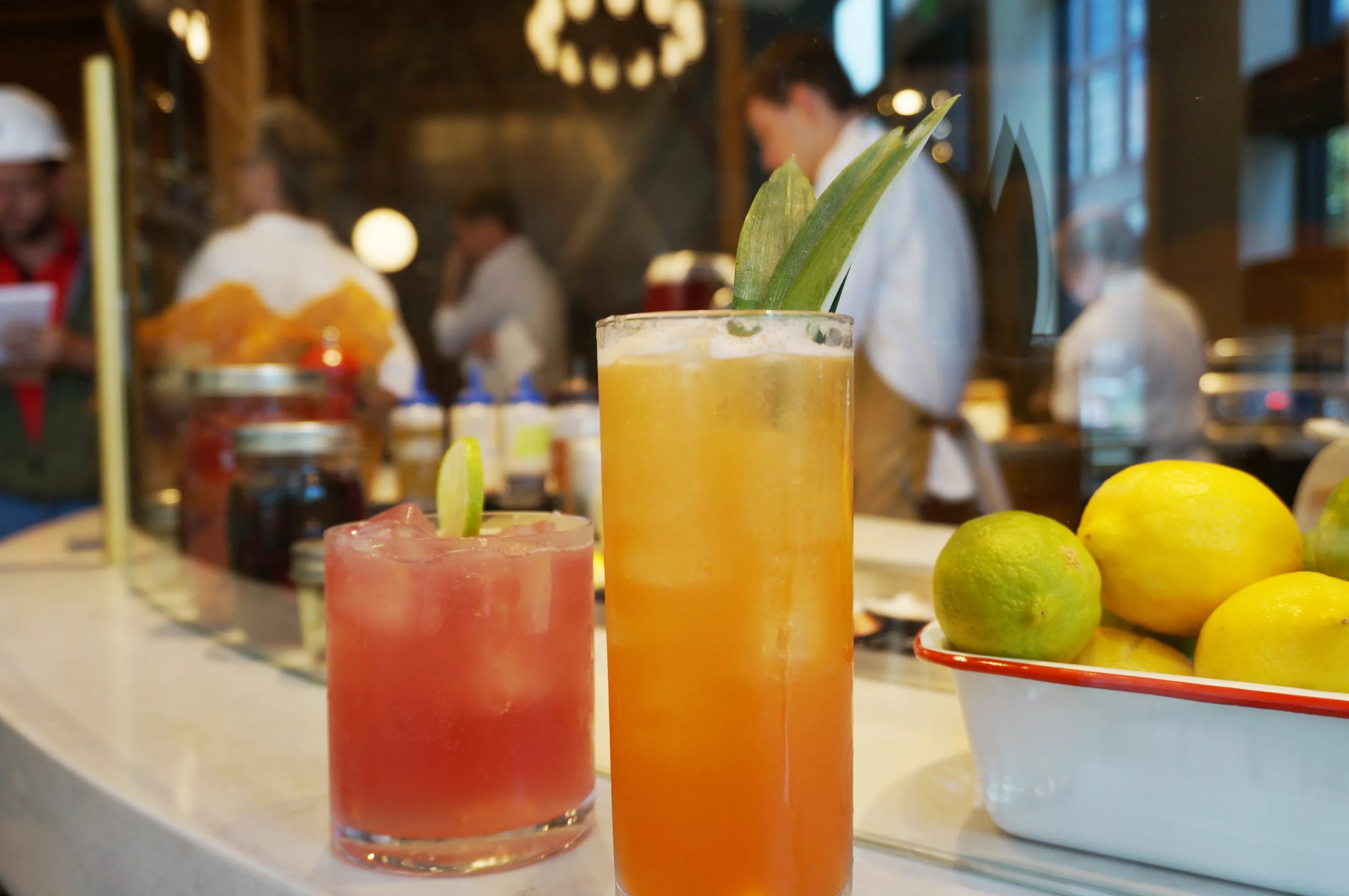 The Diablo (left) and the Pinewood Derby (right) from Urban Farmer’s cocktail menu.