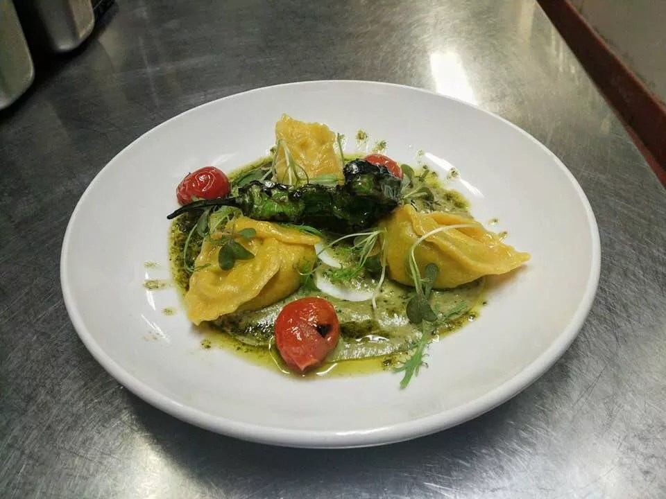 Briar Common Brewery + Eatery is offering not only a three-course plant-based meal but is pairing each vegan option with a house beer. The cost is $45 for the multi-course meal and pairing or $35 for just the food. Up first is barbecued baby carrots with tofu labneh, toasted almond and smoked paprika oil. Course two is spring greens with sweet peas, arugula, asparagus, spring onion, snap peas and white balsamic sauce. Finish up with a portabello cap filled with garlic white bean stuffing and red quinoa pilaf topped with roasted-tomato vinaigrette. The spinach and herbed-ricotta cappellacci is a vegan dish that was featured at Charcoal Bistro’s monthly vegan dining series. Charcoal Bistro