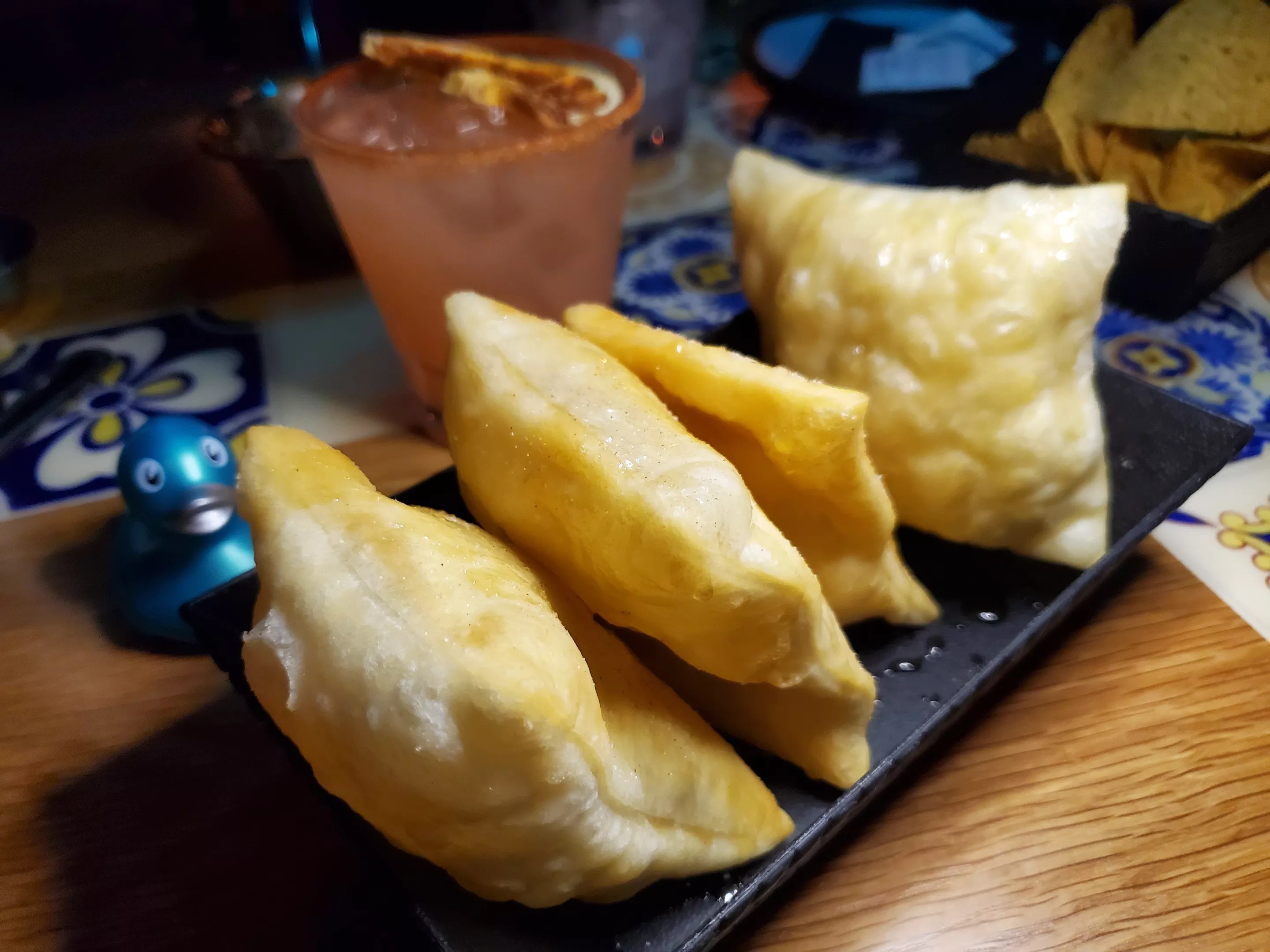 One round of sopaipillas is included; more will cost you extra (but the “wedding duck” was on the house).