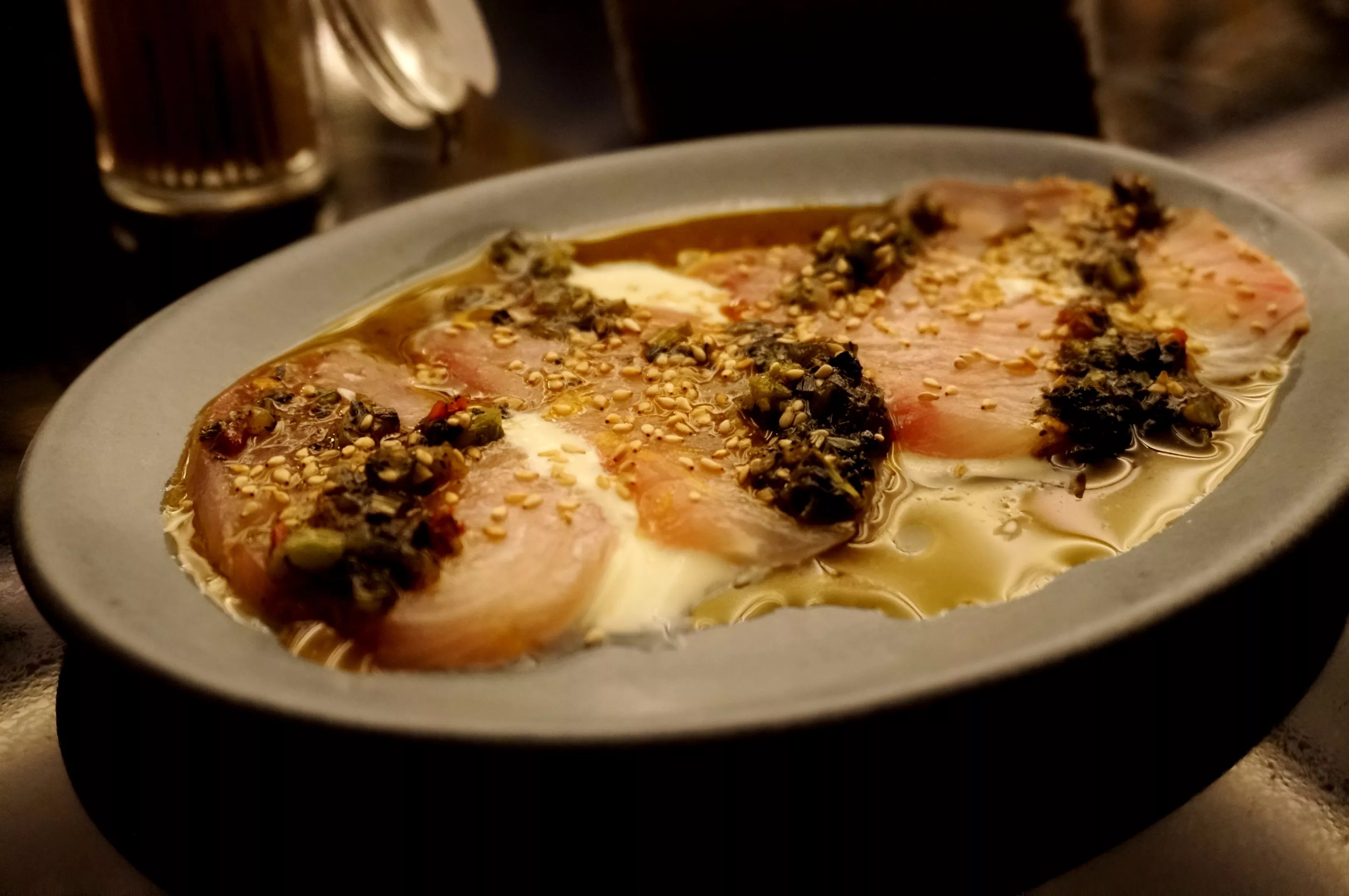 Yellowtail crudo in buttermilk and cr