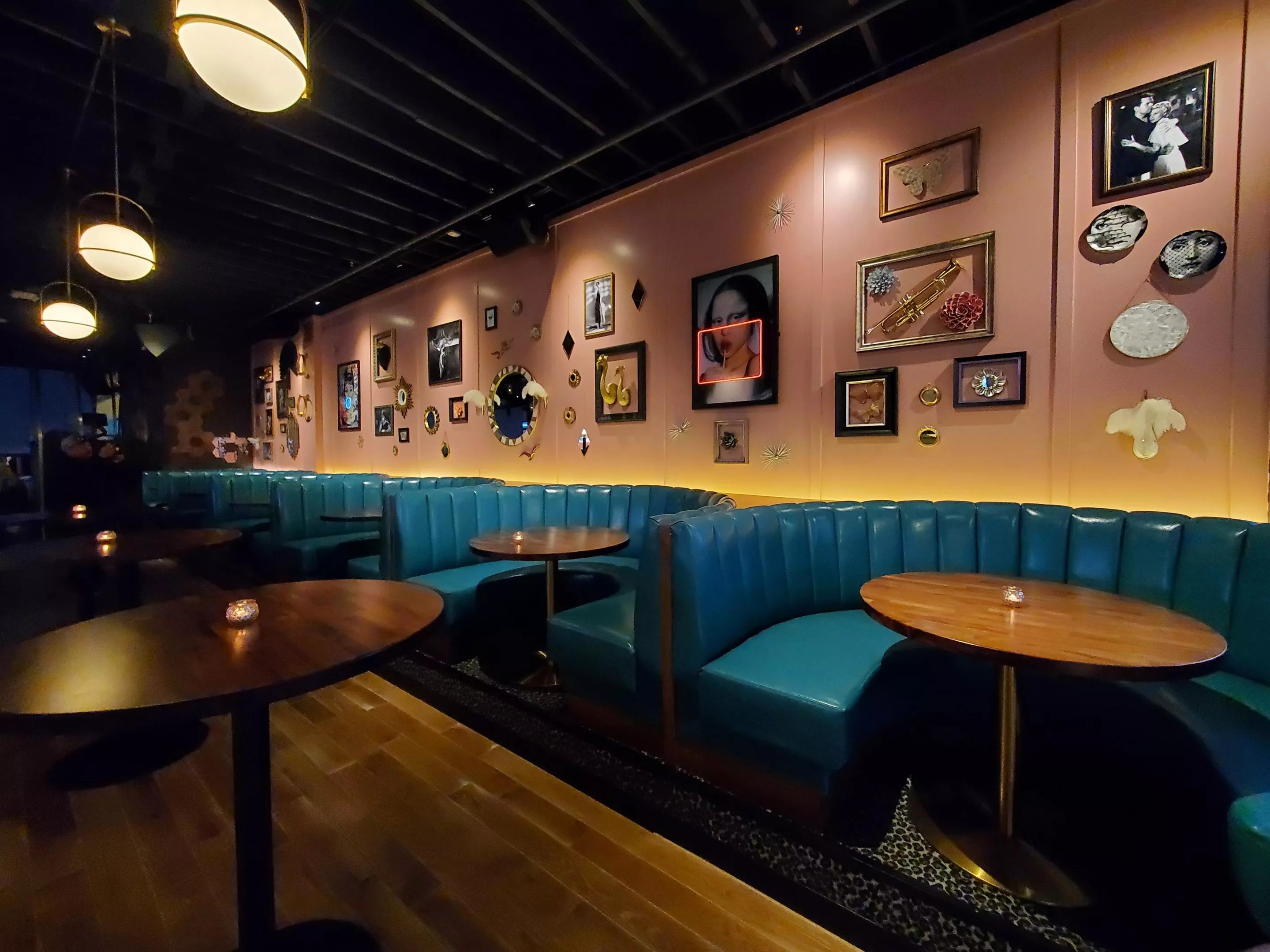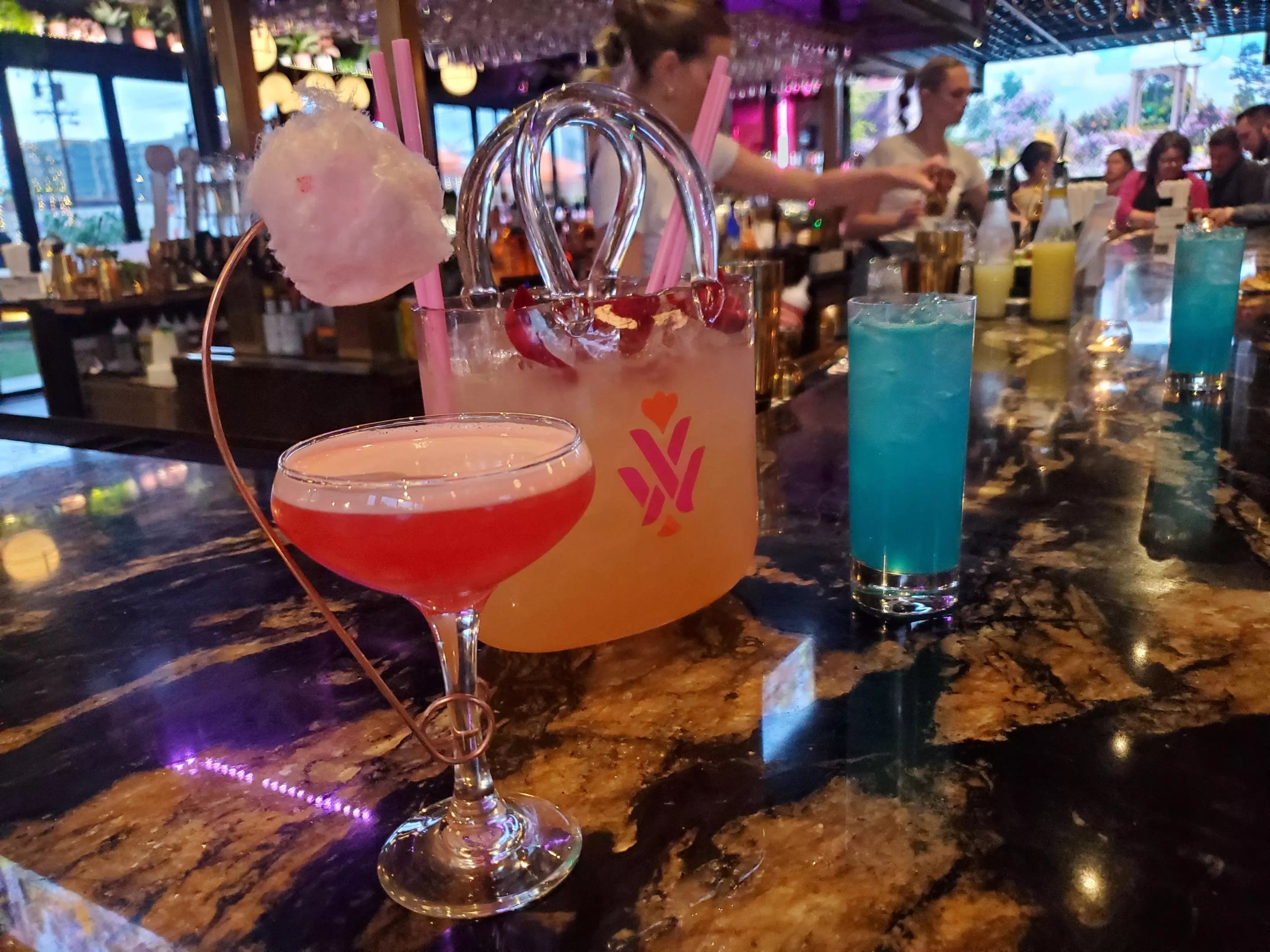Like the space itself, the cocktails are designed to be eye-catching, from the Le Cloud, served with a puff of cotton candy, to the glittery Supernova and the Queen of Hearts, which is designed for sharing and is served in a custom glass shaped like a purse (’cause, you know, girls like purses). There is also a full menu of N/A options. Molly Martin