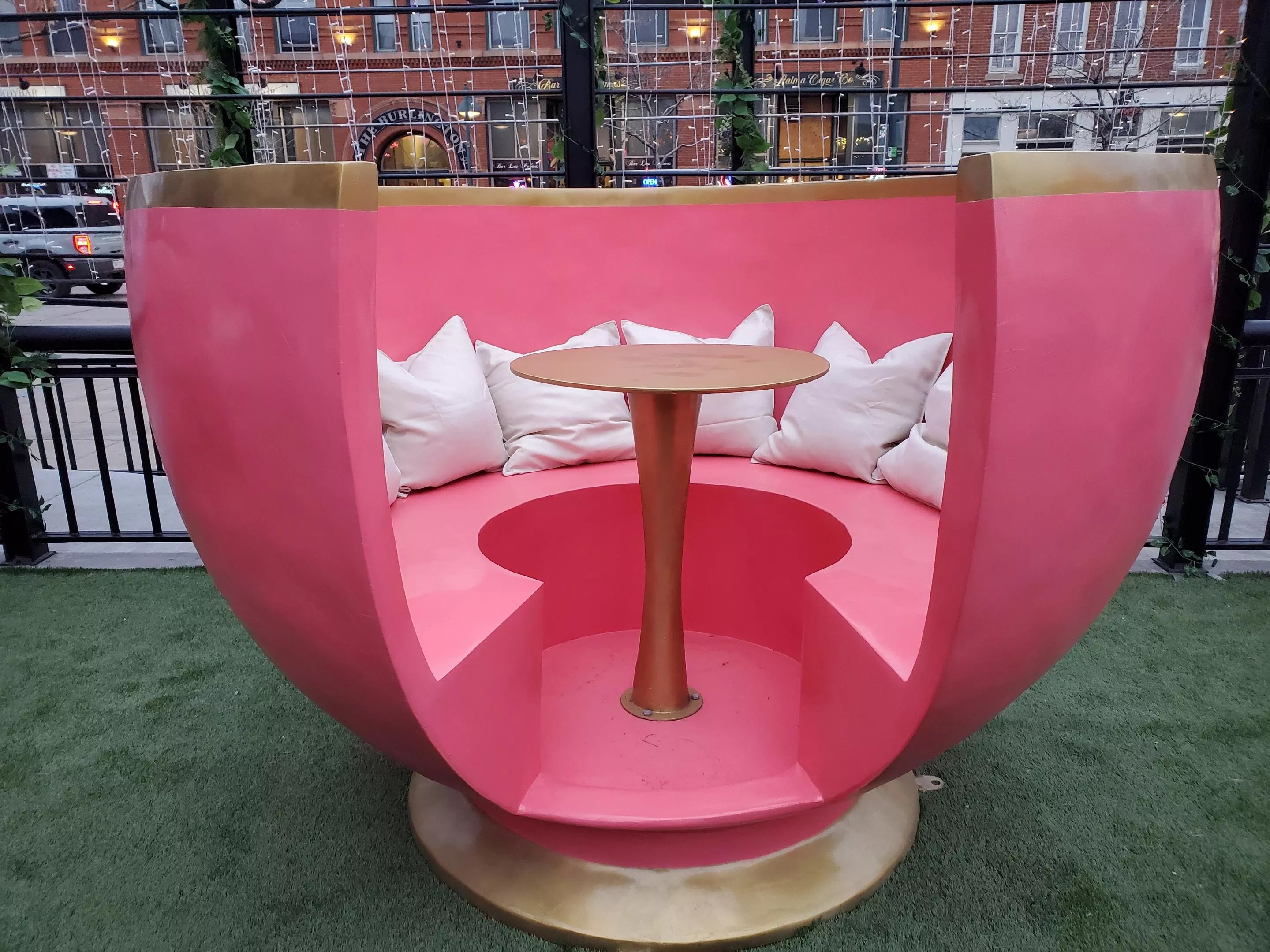 The pink teacup-shaped booths will probably be all over our Instagram feeds soon. Molly Martin