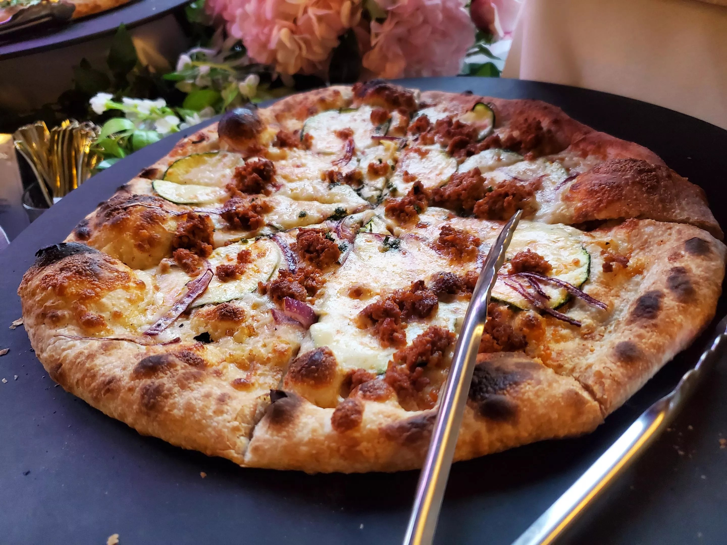 The menu includes such shareables as charcuterie, burrata and hummus; salads; larger entrees like lasagna, a torta and steak frites; plus a lineup of flatbreads including the Miss Piggy, with chorizo, red onion and zucchini. Molly Martin