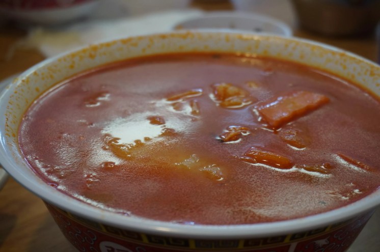 The traditional Chinese menu isn’t exactly hidden at New Peach Garden; the dinner menu touts such family-style dishes as cumin lamb, tomato with egg, and something called “homeland tastes” – a combination of saut
