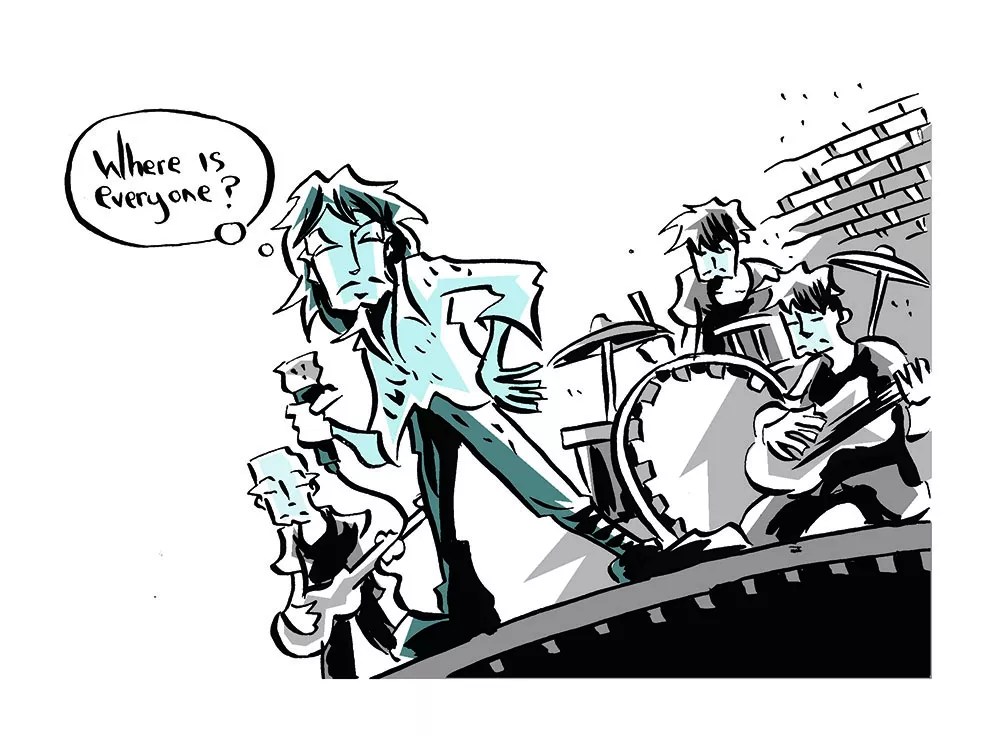 “Aside from very few people being there, the bass player also forgot his strap and had to awkwardly hold his instrument. In addition, I was having problems with the rest of the band over the clothes I wanted all of us to wear for the gig. Karl Christian Krumpholz
