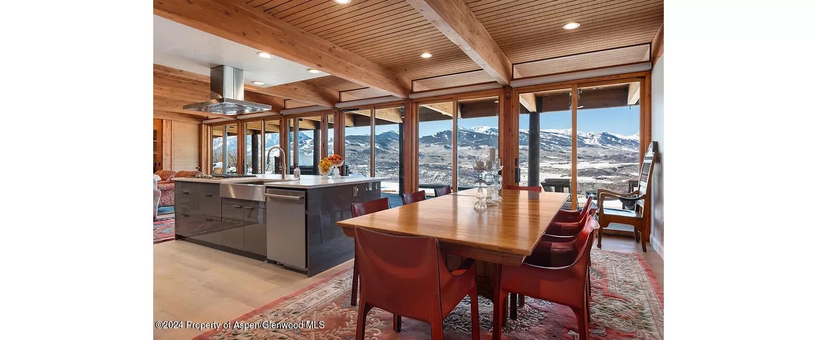 The modern kitchen has amazing views of the Aspen Valley.