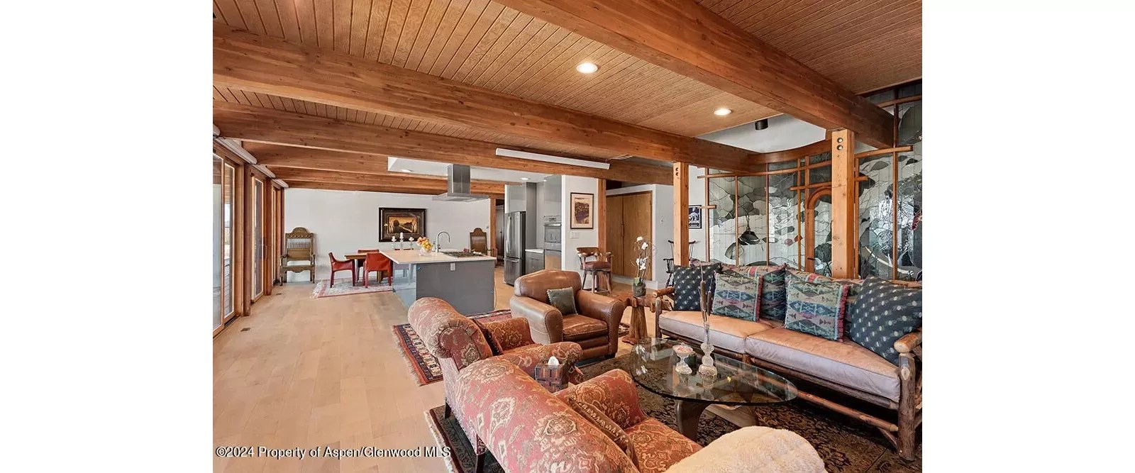 True to Colorado, there is no shortage of exposed wood in the home.