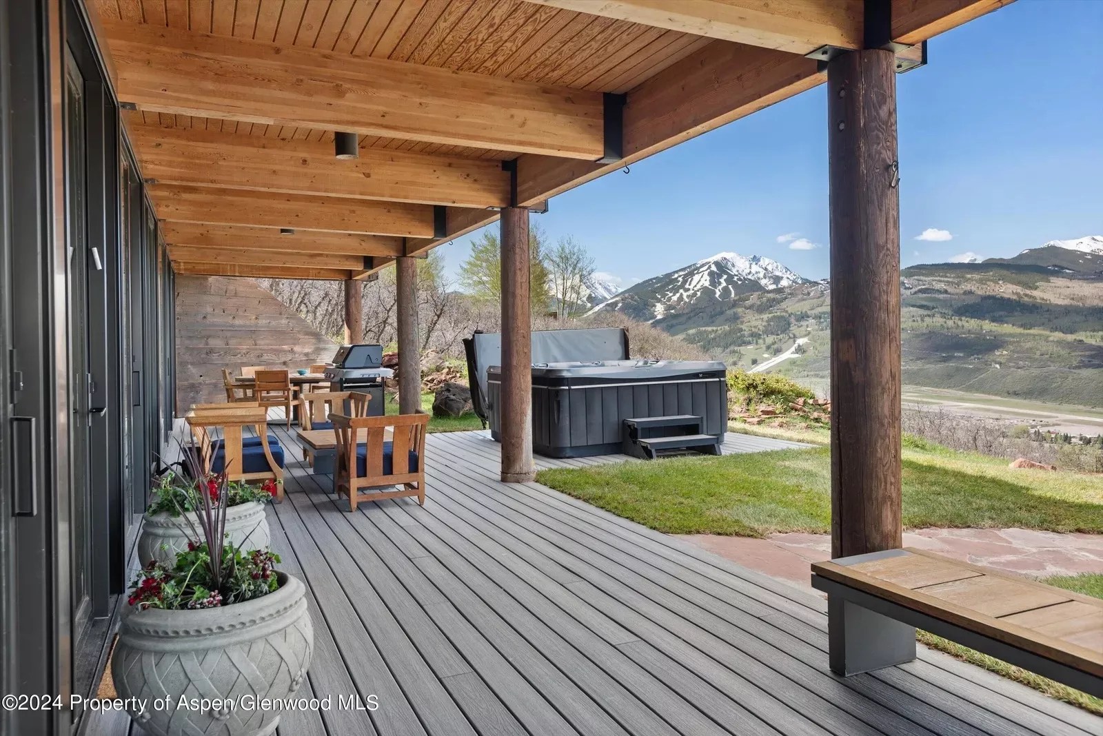 The view from one of the patios is of the Aspen Highlands Ski Area.