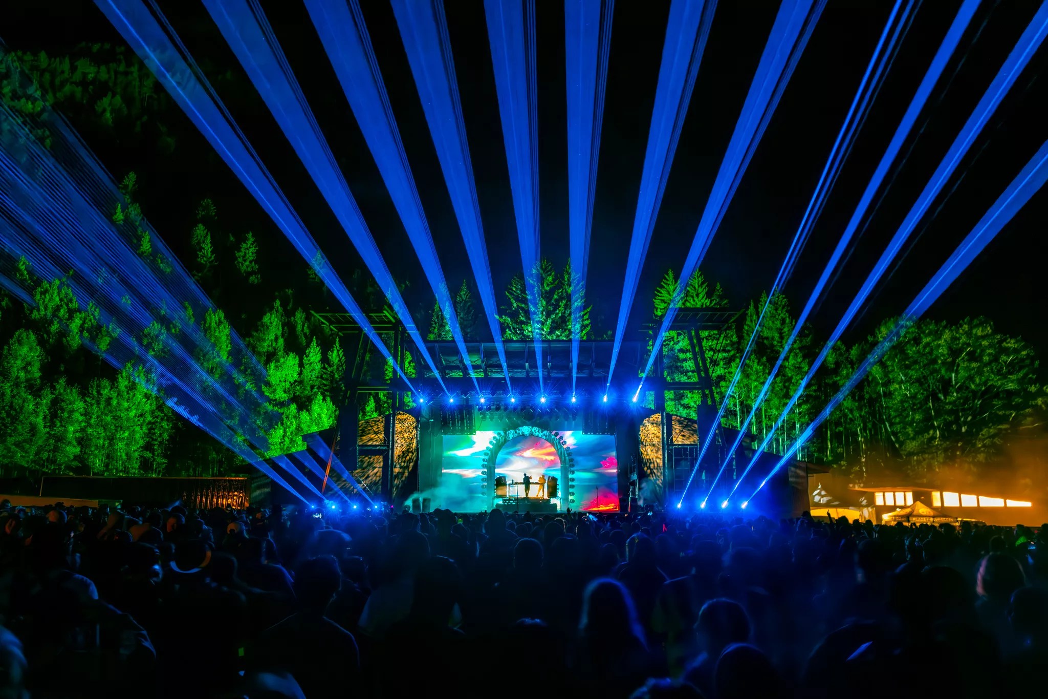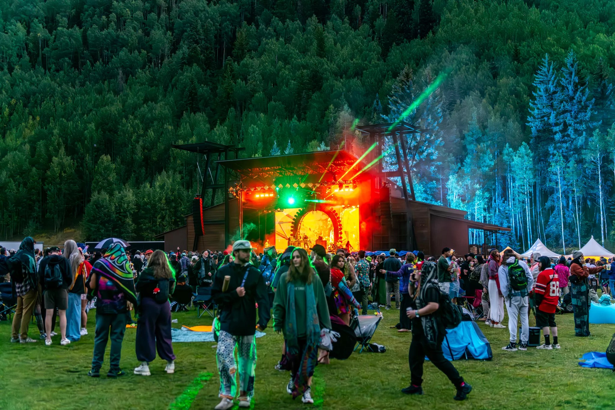 Telluride is a magnet for world-class live music, but the town hasn’t felt electronic energy this strong since Pretty Lights lit up the Town Park back in 2015 and 2016. That all changed the weekend of August 22, with the debut of Of The Trees’ festival, Camp Alderwild, produced by the partnership between Planet Bluegrass and AEG. The festival turned the box-canyon paradise into a glowing playground of heavy bass, lasers and mountain-camping magic. From the kickoff parties on Thursday, August 21, to Sunday’s poolside wind-down, the four-day celebration stitched together music, nature and community in a way that felt uniquely Telluride. EPROM at Camp Alderwild in Telluride Andrew Rios