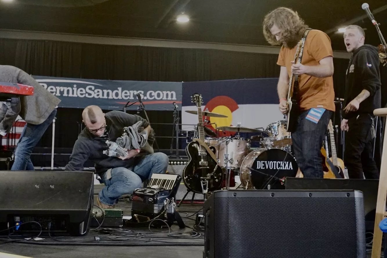 Dakota Diemand, the touring stage manager and guitar technician for indie-rock band DeVotchKa, works as a sound engineer at three Denver music venues.