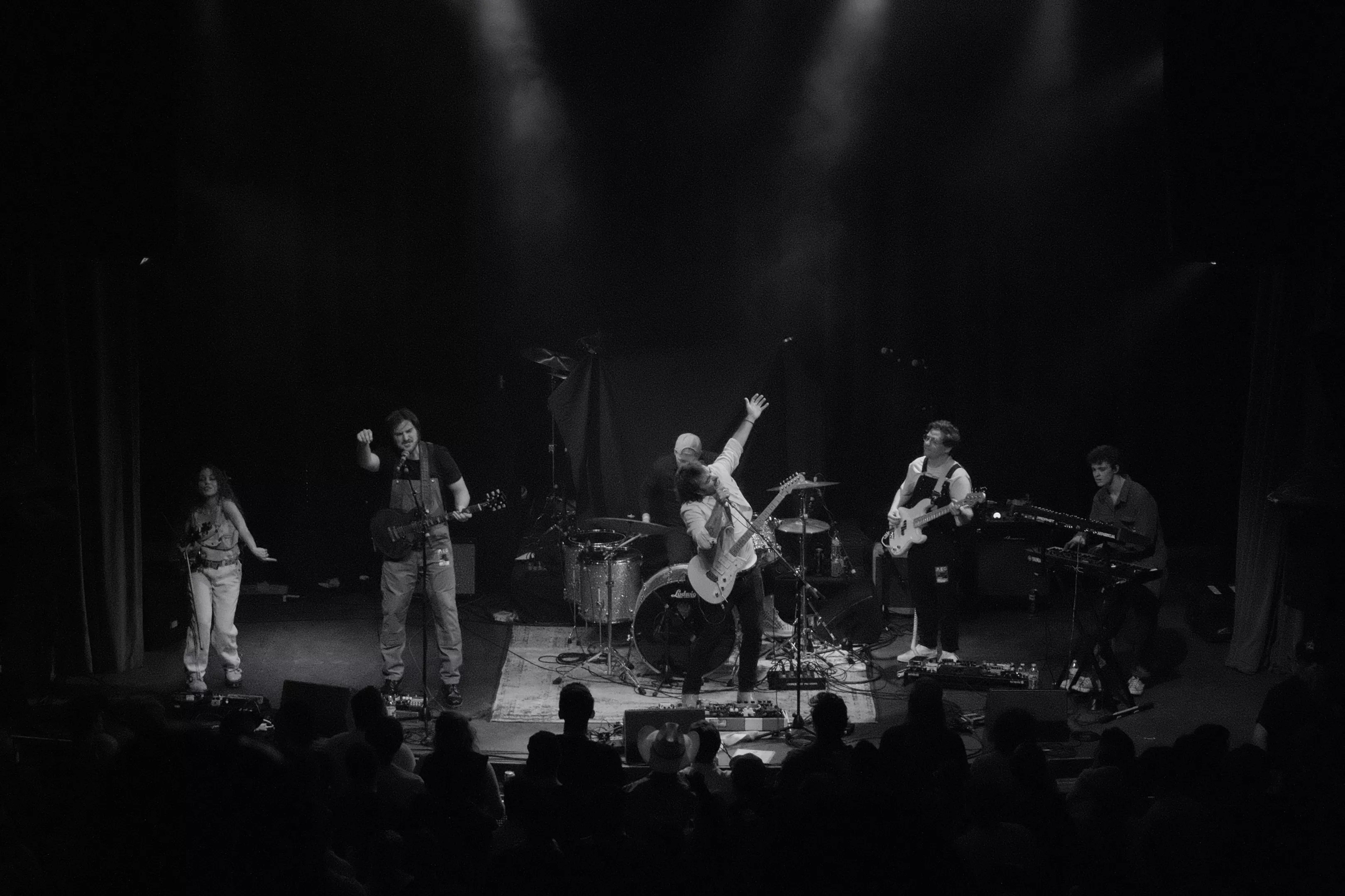 Being rowdy is par for the course. “The first UMS Hunter played with us, we were at HQ,” recalls Isaac Vance, who has played dual lead and slide guitar in the band since 2021. “It was a Sunday night, and I’m sweating so much; I made the idiot decision to wear a suit jacket. I look over and Hunter is on the ground, spinning around, his glasses are broken. And you had to get a knee surgery after that, right?”
