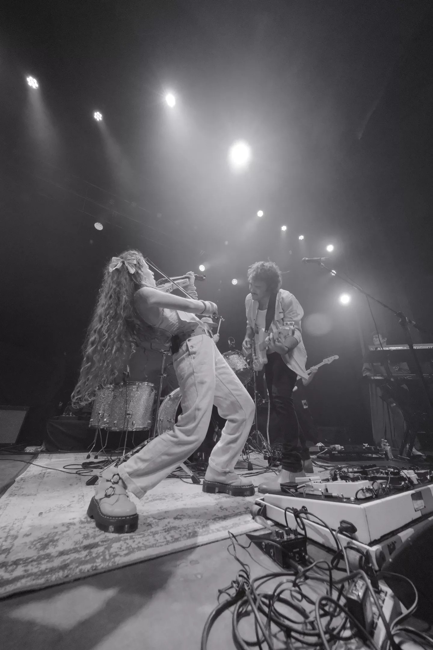 “She literally bleeds glitter,” Samp adds. Indeed, Hubbard appears on the stage like a mystical fairy, casting a spell with her electric violin as if it were a wand.