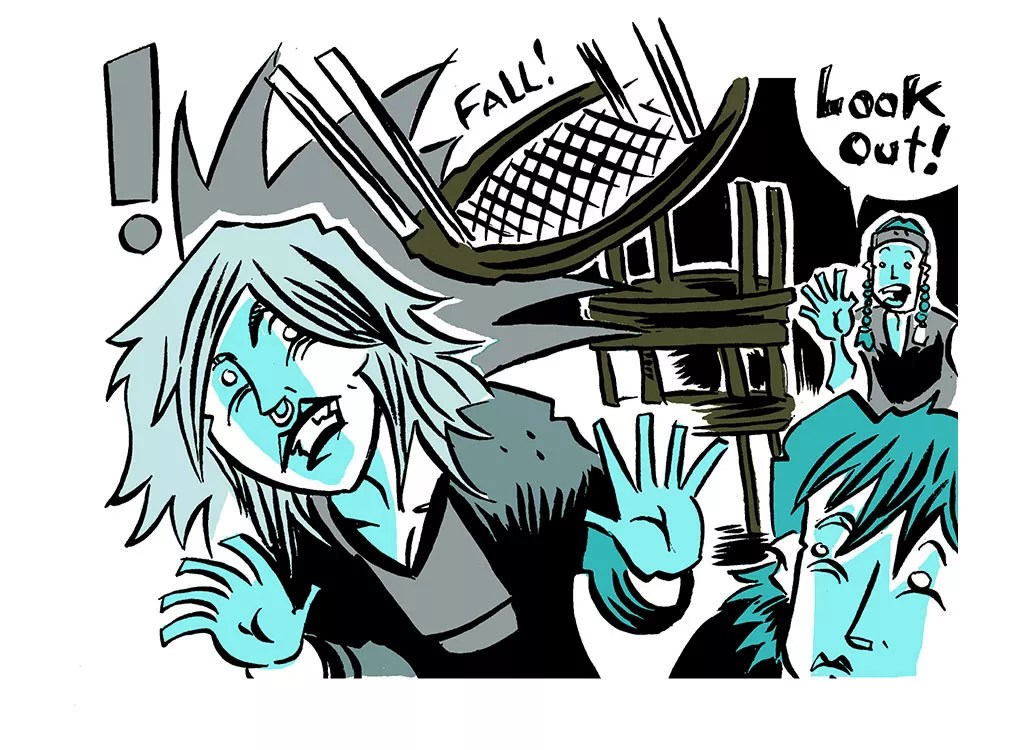 “Backstage, there were all these heavy metal patio tables stacked upside down. One of them fell, and the leg hit our singer, Eryn, in the face, causing a gaping bloody wound. We picked up some super glue at a gas station, and she glued her head back together before we played the show. She was badass! But then our bassist Roqui’s practice amp got stolen from backstage.”
