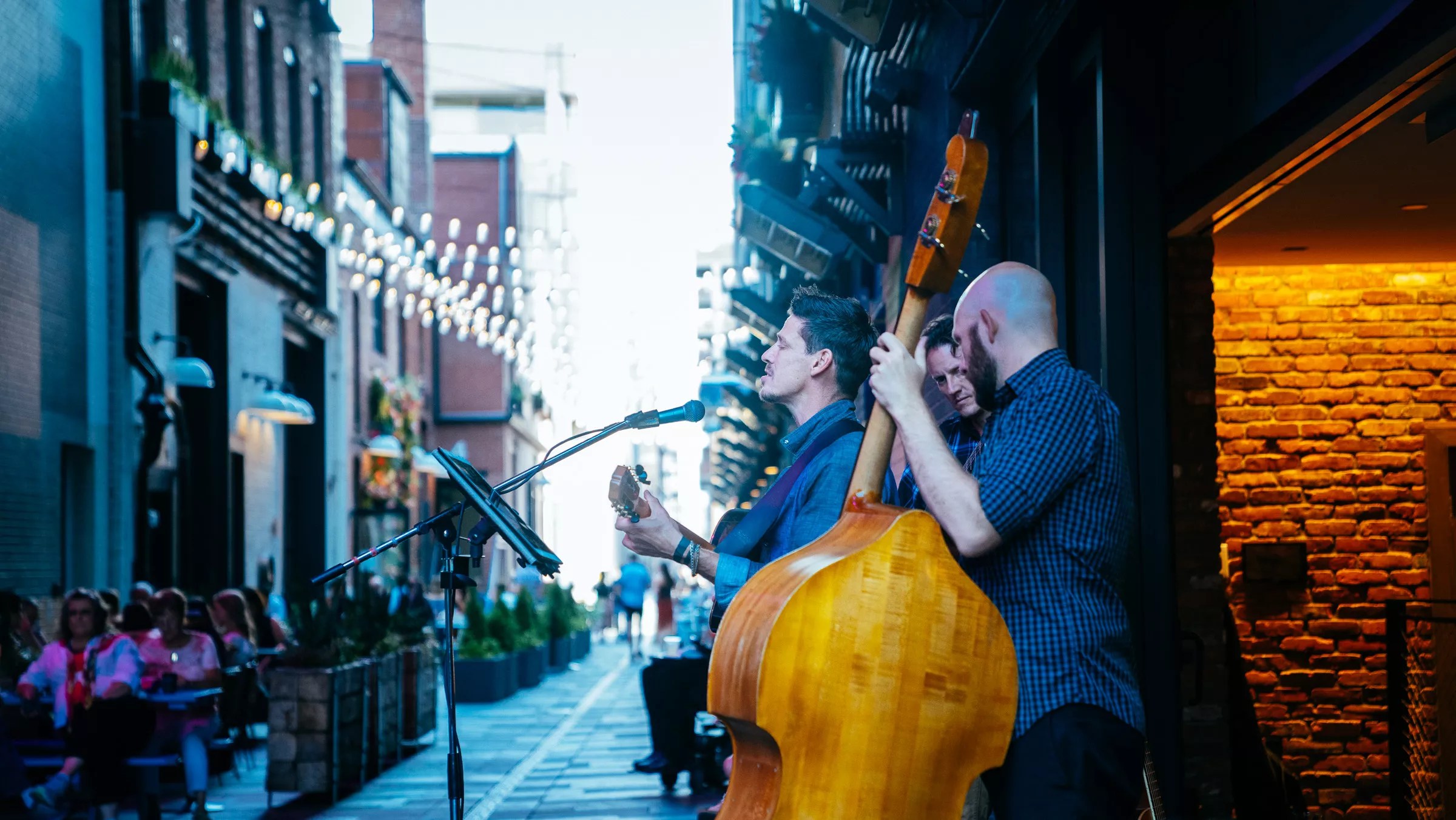While visitors enjoy the music, the artists enjoy a new marketing opportunity. “It’s a way for them to gain more followers or awareness around their music,” Pryde says. “And then from the community side, I think it’s important for the community to see that we do support the arts, not only through the murals and the cool art projects around the block, but through music as well.”