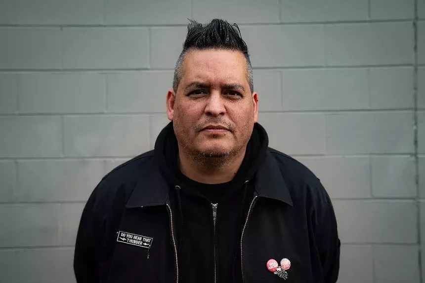 But when Deal calls Dead Pioneers “young,” that needs to be placed in context. True, the band itself hasn’t been around all that long. But rather than being twentysomething musicians still fueled by post-adolescent fury, Deal is fifty and Brennan is 55. “This was never what I was dreaming of when I was starting to play in punk-rock bands,” Brennan says of the rapid ascent. “It was always about just making a living, you know what I mean? Doing a job that you like.” A scene veteran, Brennan has been in a litany of Colorado punk bands since the ’90s, including Wretch Like Me and Joy Subtraction. Before that, he led the Tacoma, Washington, outfit My Name, which released two albums in the early ’90s on Seattle-based label C/Z Records – which makes Brennan and Ament labelmates of a sort, since Green River, the band in which Ament and guitarist Stone Gossard played before they launched Pearl Jam, appeared on the legendary C/Z 1986 compilation Deep Six, one of the records that helped crystallize what became known as grunge. And as of this year, Brennan’s the new lead singer of Rich Kids on LSD, the resurrected California punk band that everyone from Green Day to Foo Fighters has cited as an influence. Deal is no slouch in the accomplishment department himself. A member of the Pyramid Lake Paiute Tribe who was raised in Park City, Utah, he’s risen from commercial graphic designer to a fine artist whose bold, outspoken work has been displayed at galleries around the country, from the Denver Art Museum to the Smithsonian Institution in Washington, D.C. Most recently, his weighty installation piece Tutse Nakoekwu (Minor Threat) – the parenthetical in the title is a nod to the inspirational 1980s hardcore band – was displayed at the Sordoni Art Gallery at Wilkes University in Pennsylvania this past winter. He even appeared on The Daily Show With Jon Stewart in 2014 to talk about the Native American mascot controversy centering on the NFL team that eventually became the Washington Commanders.