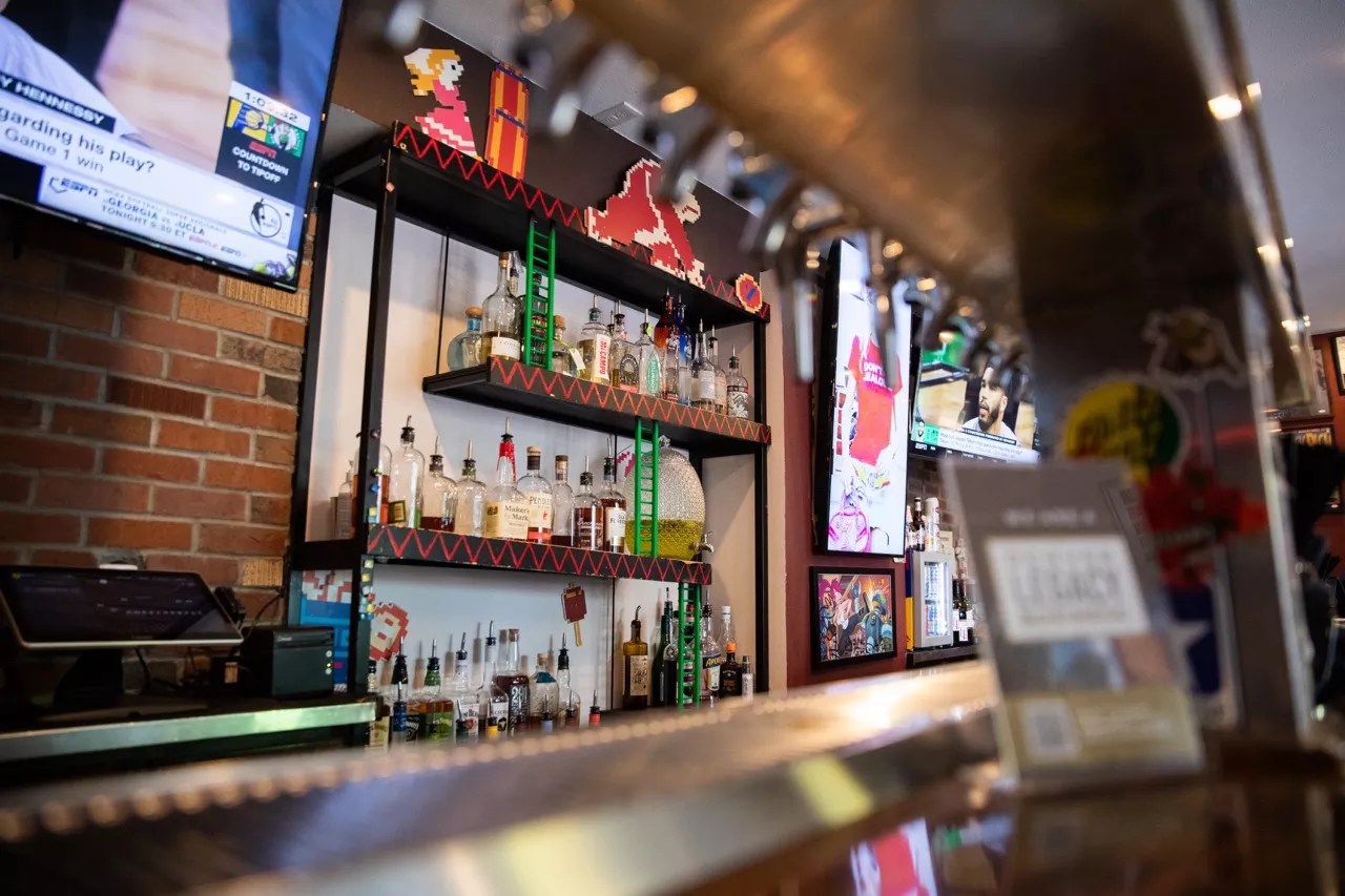 The Wreck-it-Ralph-themed liquor shelf was part of the original Monkey Barrel.