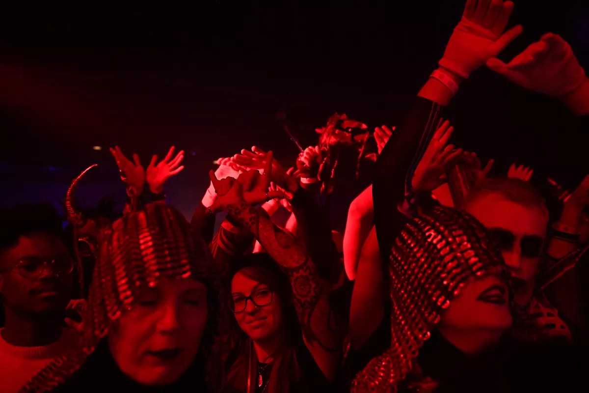 However, our immersive ceremonial concerts are designed to meet folks wherever they are at. Some might say it’s difficult to escape being challenged or even overwhelmed with itchy-O’s powerful auditory, visual, physical and metaphysical input, but we are definitely not interested in trapping anyone. We are all about agency, consent and inclusion, and you’ll find a whole spectrum of engagement – from our Patreon supporters, who come ready to dive in deep after receiving their preparatory pre-event workbooks we call the “Resonant Primer,” to folks that just want to check it out from the sidelines. But if you are sensitive to loud music, strobing lights and rocking the fuck out…maybe this is not for you.