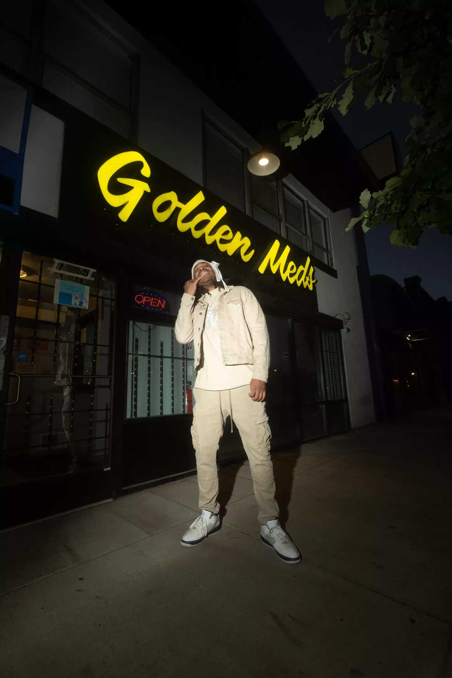 Encouraged by the enthusiastic feedback, Angelo began to pursue music with a new resolve. He started recording freestyles (using a coin-operated machine at a local arcade) to post on Soundcloud, studied trailblazing artists such as Kendrick Lamar and Tyler, the Creator, filmed videos with his friends, honed his performance skills at open mics, then started to reach out to booking agents at venues around town. In 2019, before Angelo was even of age, he booked himself a gig opening up for DaBaby at Cervantes’. A few months later, he met Arnold, who at the time was recruiting artists for the label he was then hoping to build.