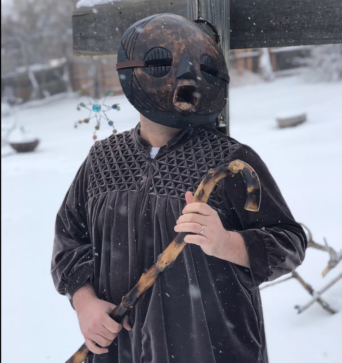 He’s a [wooden] staff that I found in the forest when I was about seven or eight years old. I was walking, I thought it was a stick, and I accidentally tripped over it. But I picked it up, and I noticed an immediate flashback that I knew this piece of wood somehow. I immediately recognized it as Gerald. When I communicate with Gerald, I’m able to use him to then communicate with my Great-Aunt Coleslaw, wherever she may be. Right now she’s in the future, the year 3144. Some of my albums are her music, and some of them are her poetry set to an instrument that she helped create, called the Maya board.