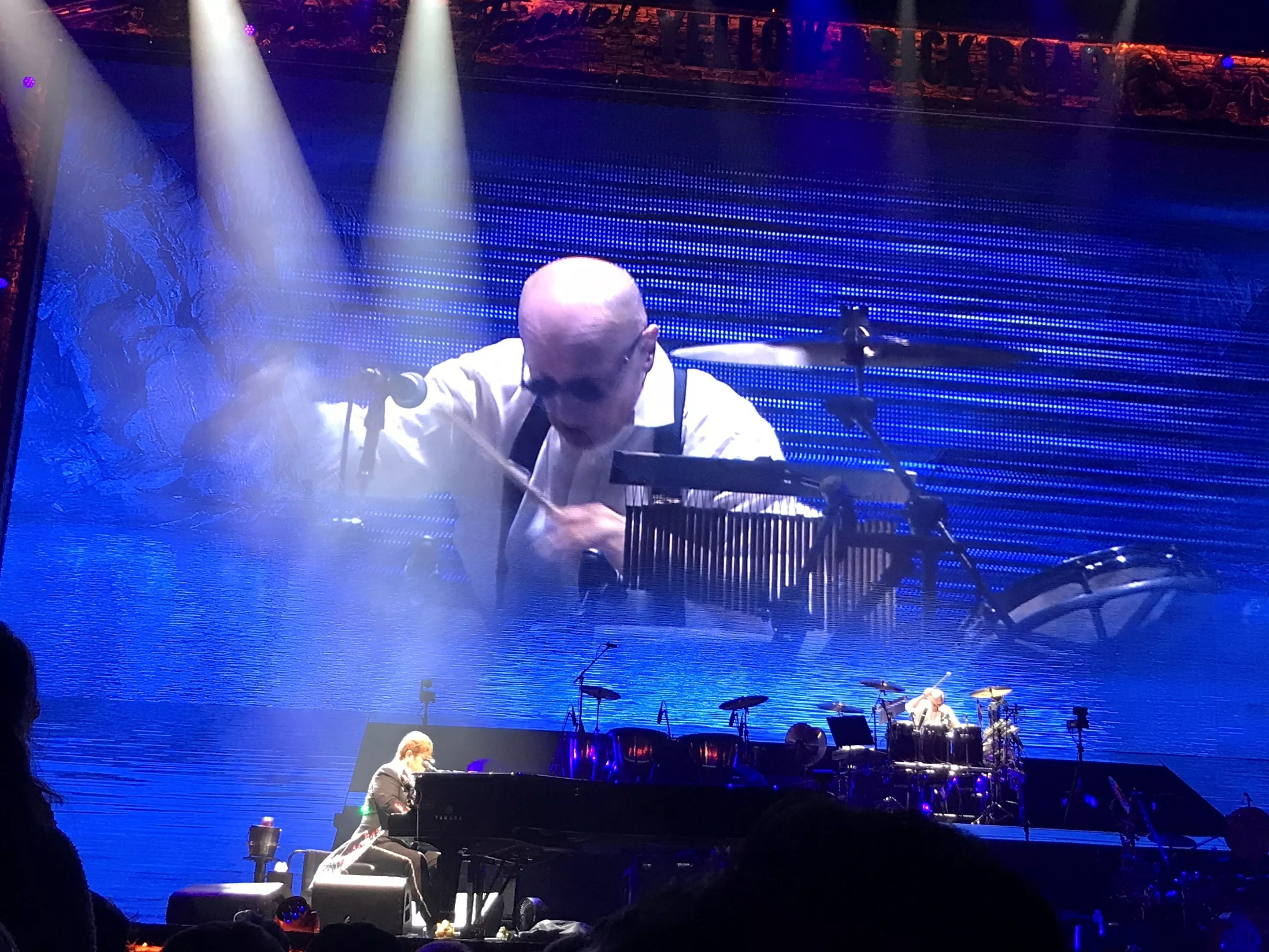Unlike so many artists who take their collaborators for granted, John lavished praise on his fellow musicians at his first night in Denver. He waxed about his struggles in the industry co-writing music with Taupin. He explained how each of his bandmates came on board and what they brought to the band. There was animated percussionist Ray Cooper, who nearly stole the show with his tambourine-playing antics, seasoned drummer Nigel Olsson, and electric guitarist David Johnstone, who kept things ticking along.