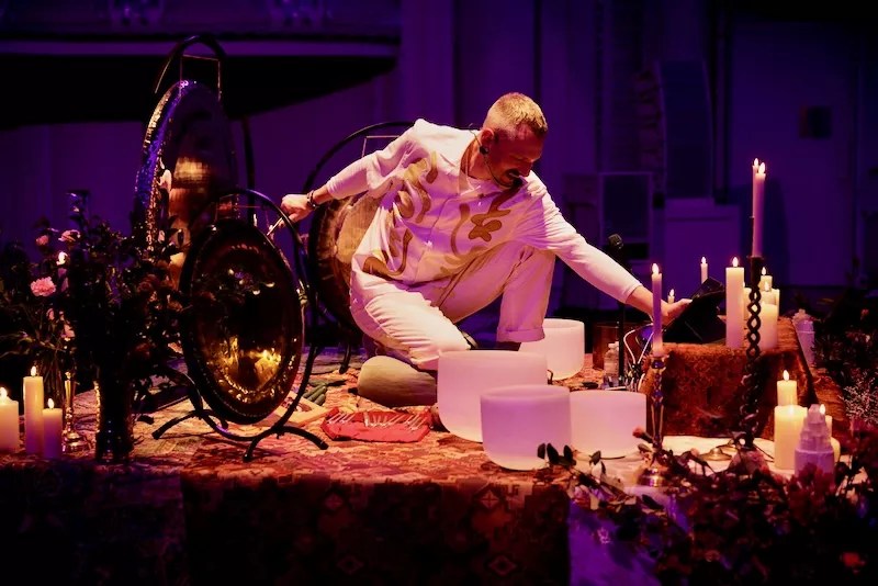 From these early experiments, The RESET emerged as a unique blend of improvisational singing and traditional sound healing instruments like crystal singing bowls, gongs and tuning forks. Youngs explains that the entire experience is crafted in the moment, with nothing pre-recorded, making each performance a reflection of the specific energy of the space and the audience.