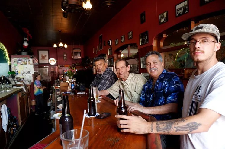 Tom Quintana Jr. (right) and Tom Quintana Sr. (second from right) at longtime Northside restaurant Patsy’s before it closed.