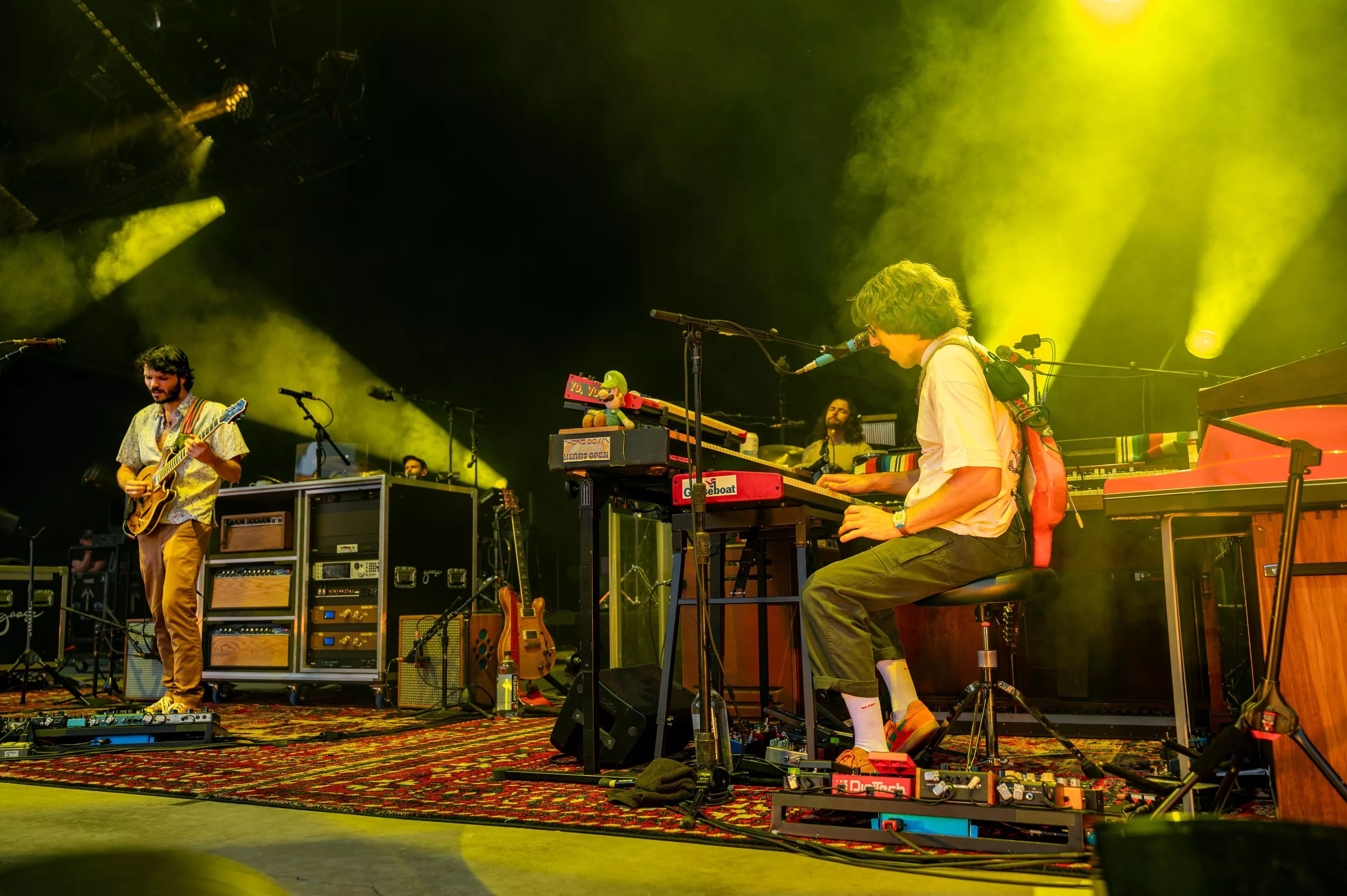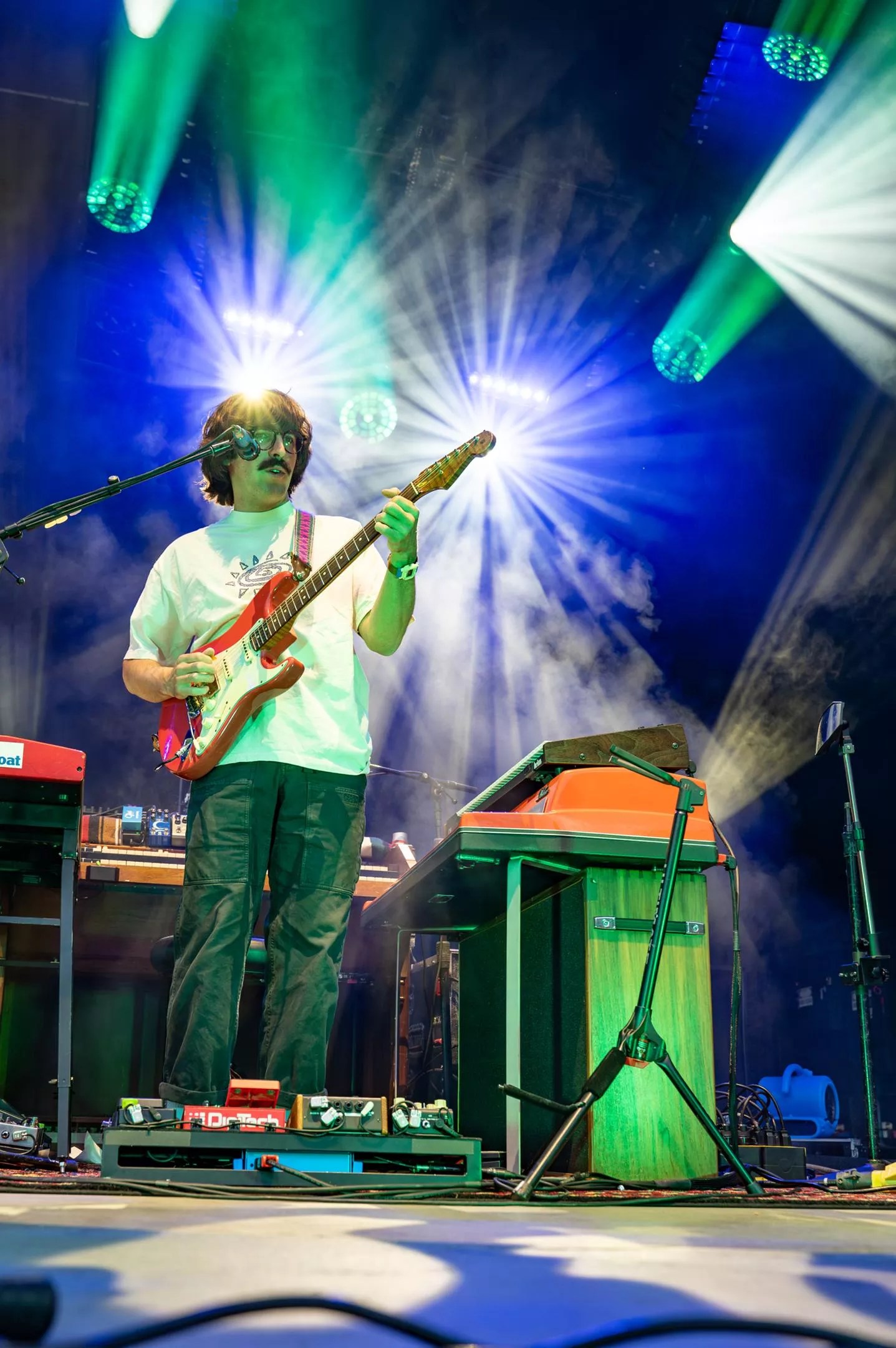 This is Goose’s first time playing the venue in Greenwood Village, after selling out Red Rocks the last two years. While this show was hardly sold out, we did see that the band has fully come into its own sound. Back in 2022, many concert-goers commented on the band’s similarity to Phish, but Goose has crafted a more unique experience in the following years, particularly with its indie-groove sound and swelling jams that showcase the members’ refreshed intentional connection to each other, as well as their individual talents.